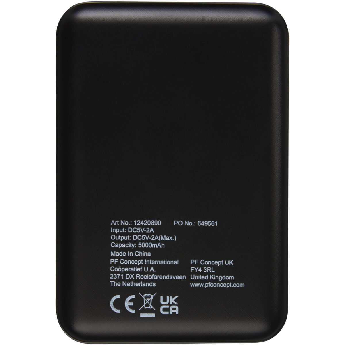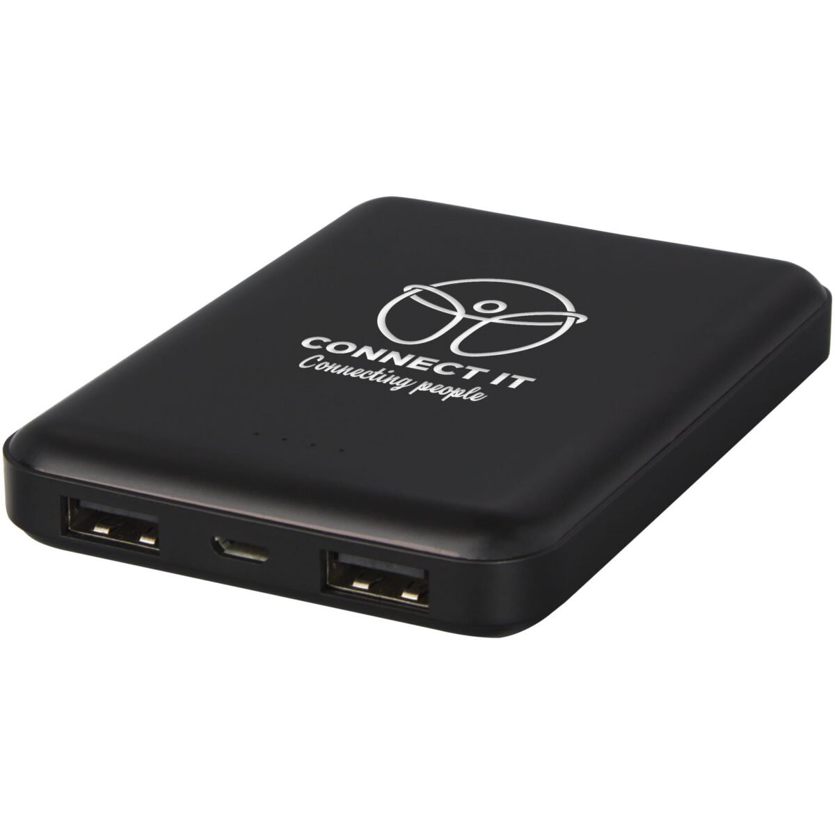Batterie de secours plate et durable avec une batterie polymère de 5 000 mAh. Peut être gravée au laser sur le panneau avant, ce qui illuminera le logo lorsque la batterie de secours est allumée ou utilisée. Sortie : 5 V/2A. Entrée : 5 V/2A. Aucun câble accessoire n’est fourni à des fins de durabilité.