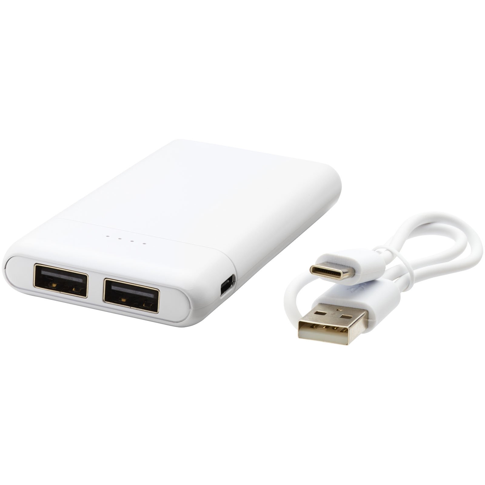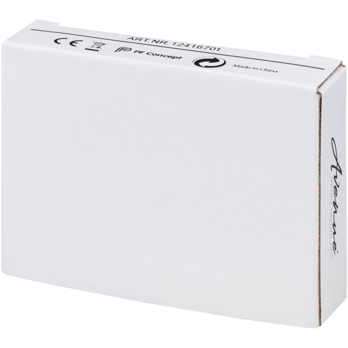 Batterie de secours de poche avec une batterie haute densité de 5 000 mAh. Entrée Type-C (5 V / 2 A), et double sortie USB-A (5 V / 2 A). Câble de chargement en plastique TPE sans PVC inclus. Livrée dans un coffret cadeau Avenue.