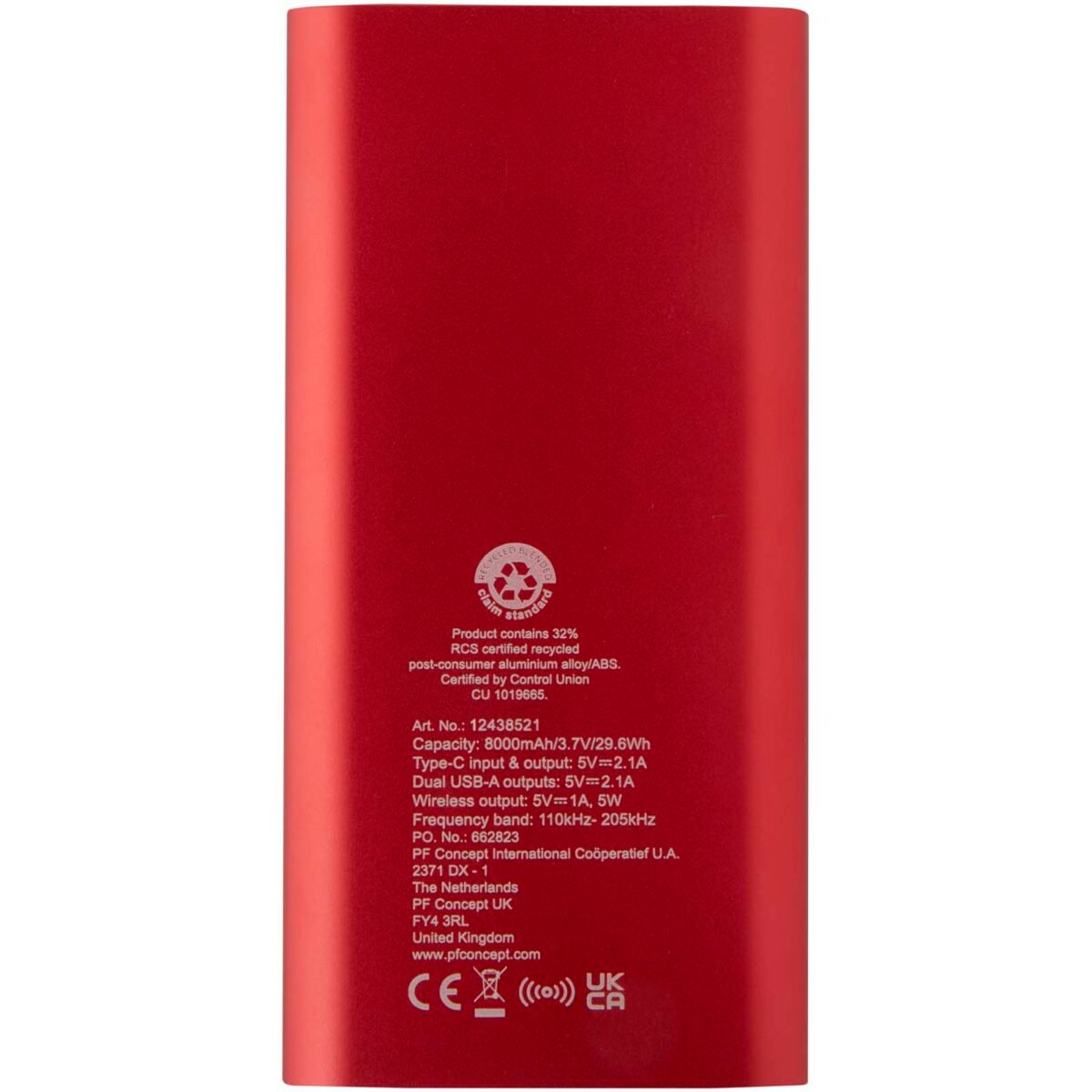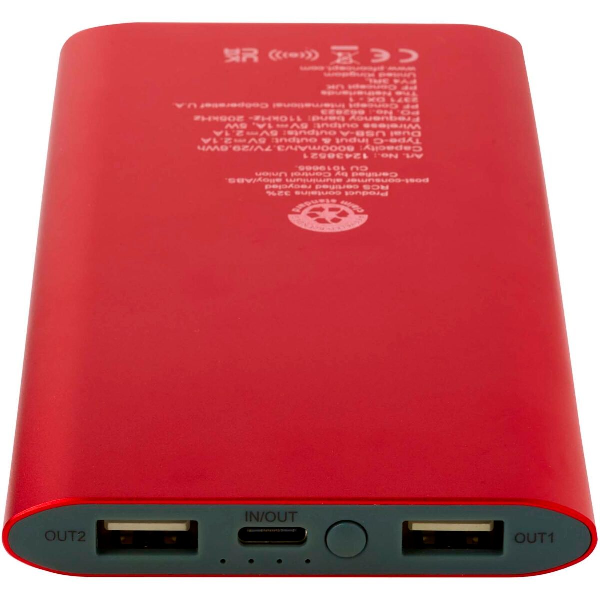 Batterie de secours avec port d’entrée/de sortie de type-C et 2 ports USB-A, permettant de charger 3 appareils simultanément. Elle offre également une charge sans fil de 5 W pour tous les appareils compatibles Qi. La batterie de secours est équipée d’une batterie lithium-polymère de 8 000 mAh qui délivre une puissance de sortie totale de 10 W maximum. Cette batterie de secours est fabriquée à 28 % de plastique recyclé certifié RCS. Livrée avec un câble de charge TPE de type-C vers USB-A.