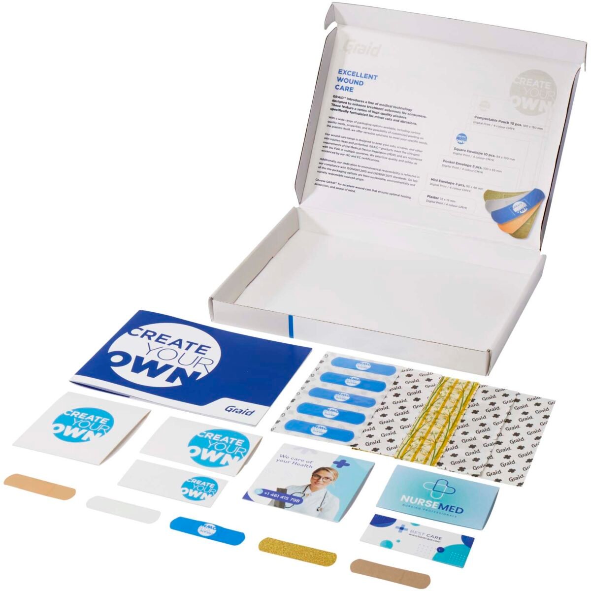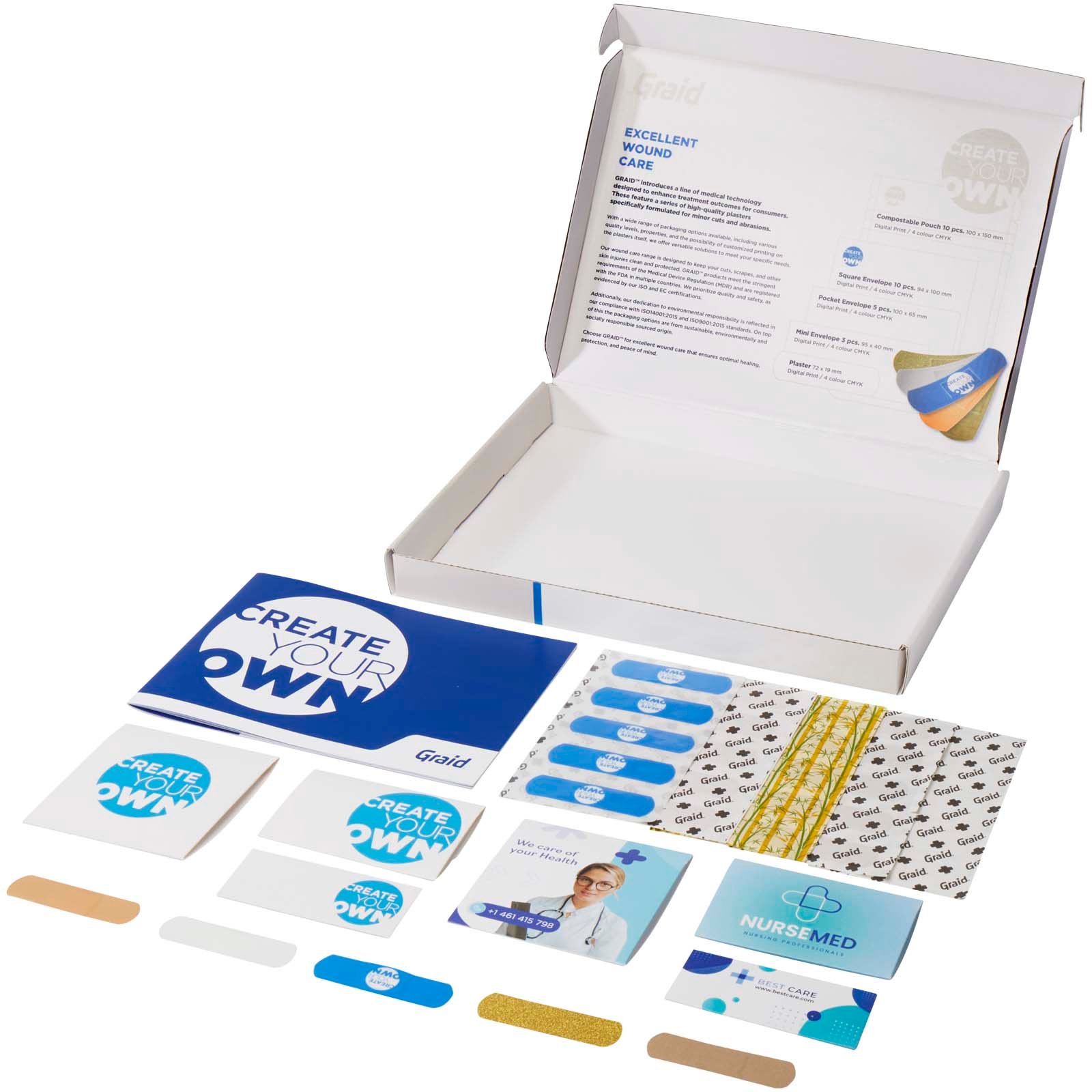 Comprend 3 enveloppes en papier de différentes tailles (95 x 40 mm, 100 x 65 mm, 100 x 94 mm), chacune contenant 5 pansements différents (bambou, universel, pailleté, sensible et imprimé). Nos produits répondent aux exigences strictes de la Medical Device Regulation (MDR) et sont enregistrés auprès de la FDA dans plusieurs pays. Conforme aux normes ISO14001:2015 et ISO9001:2015. Dimensions du pansement : 72 x 19 cm.