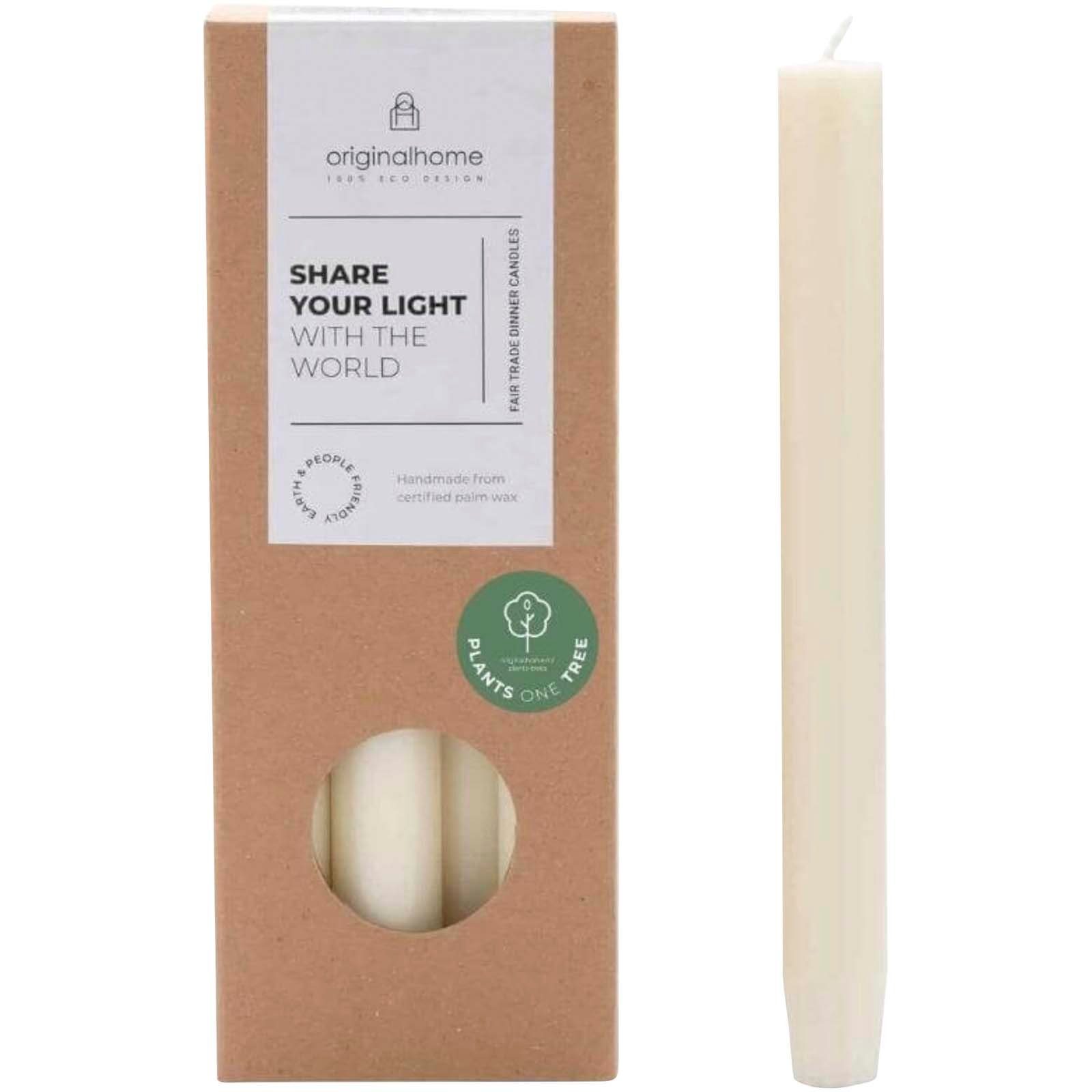 La bougie de table Originalhome, 100 % naturelle, est fabriquée à la main à partir de cire de palmiste certifiée. Comprend 10 bougies sans parfum présentées dans un coffret cadeau. Chaque bougie brûle pendant environ 7 à 8 heures.
