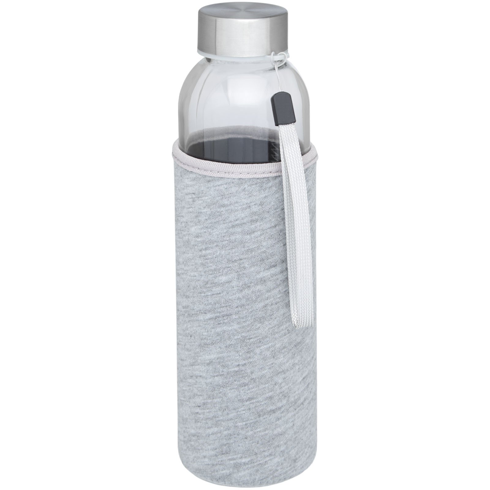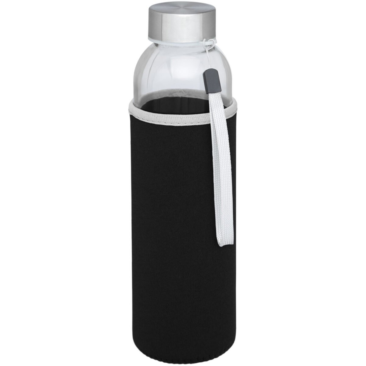 Bouteille en verre à simple paroi avec couvercle vissé. Le couvercle est doté d’une sangle pour un transport facile, ainsi que d’un manchon en néoprène. Recommandée pour les boissons froides. Ne pas placer au congélateur ou au micro-ondes. Capacité de 500 ml. Présentée dans une boîte cadeau.