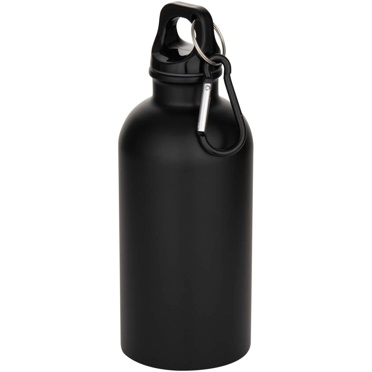 Bouteille d’eau Oregon de 400 ml à simple paroi avec finition MATE, en acier inoxydable recyclé certifié RCS avec mousqueton