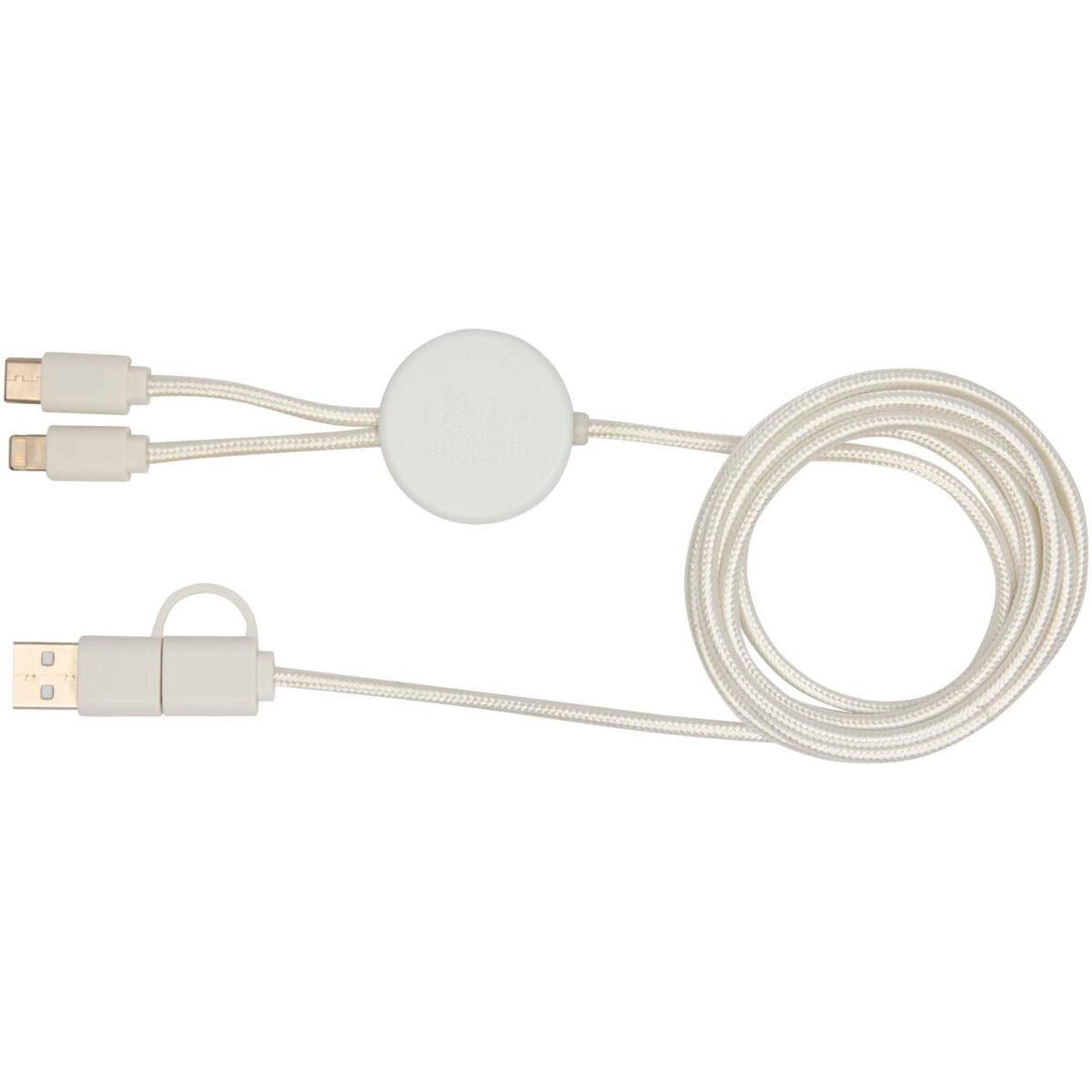 Le câble 5-en-1 de synchronisation des données et de charge rapide 27 W Chechia est fabriqué à partir de plastique recyclé rehaussé de bambou provenant de sources responsables. Ce câble est doté de connecteurs d’entrée USB-A et Type-C combinés à un connecteur de sortie Type-C et combi Lightning/Micro USB. L’USB-A vers l’USB-C fournit une puissance de sortie maximale de 27 W. Toutes les autres options de connexion offrent une puissance maximale de 15 W. Compatible avec CarPlay et Android Auto. Que vous soyez à la maison, au bureau ou en déplacement, le câble Chechia offre performance et style dans un ensemble compact. Longueur du câble : 150 cm.