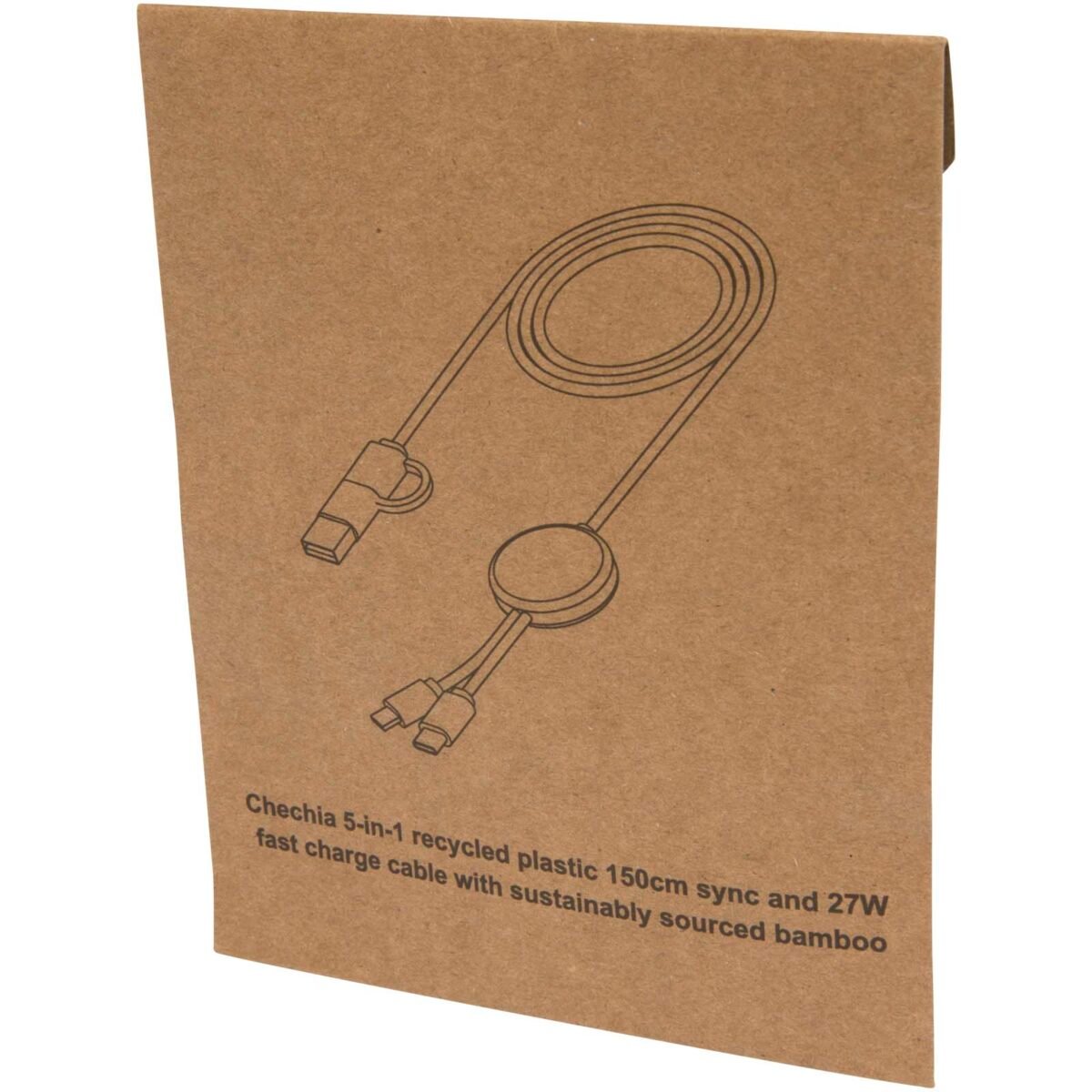 Câble 5 en 1 Chechia en plastique recyclé de 150 cm pour la synchronisation des données et la charge rapide de 27 W avec détails en bambou