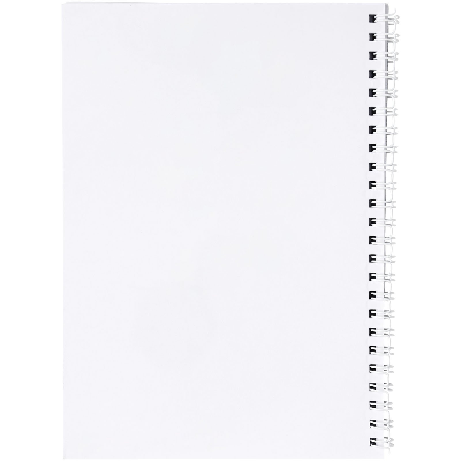 Cahier Desk-Mate® A5 à spirales. Le modèle standard comprend 50 feuilles de papier vierge de 80 g/m² et une 1ere de couverture transparente en polypropylène de 500 microns (250 g/m²). Spirales noires ou blanches. Disponible également avec 100 feuilles. Vous pouvez personnaliser les pages de ce carnet avec n’importe quel motif – que vous souhaitiez du papier ligné, avec des carrés ou des points – tout est possible !