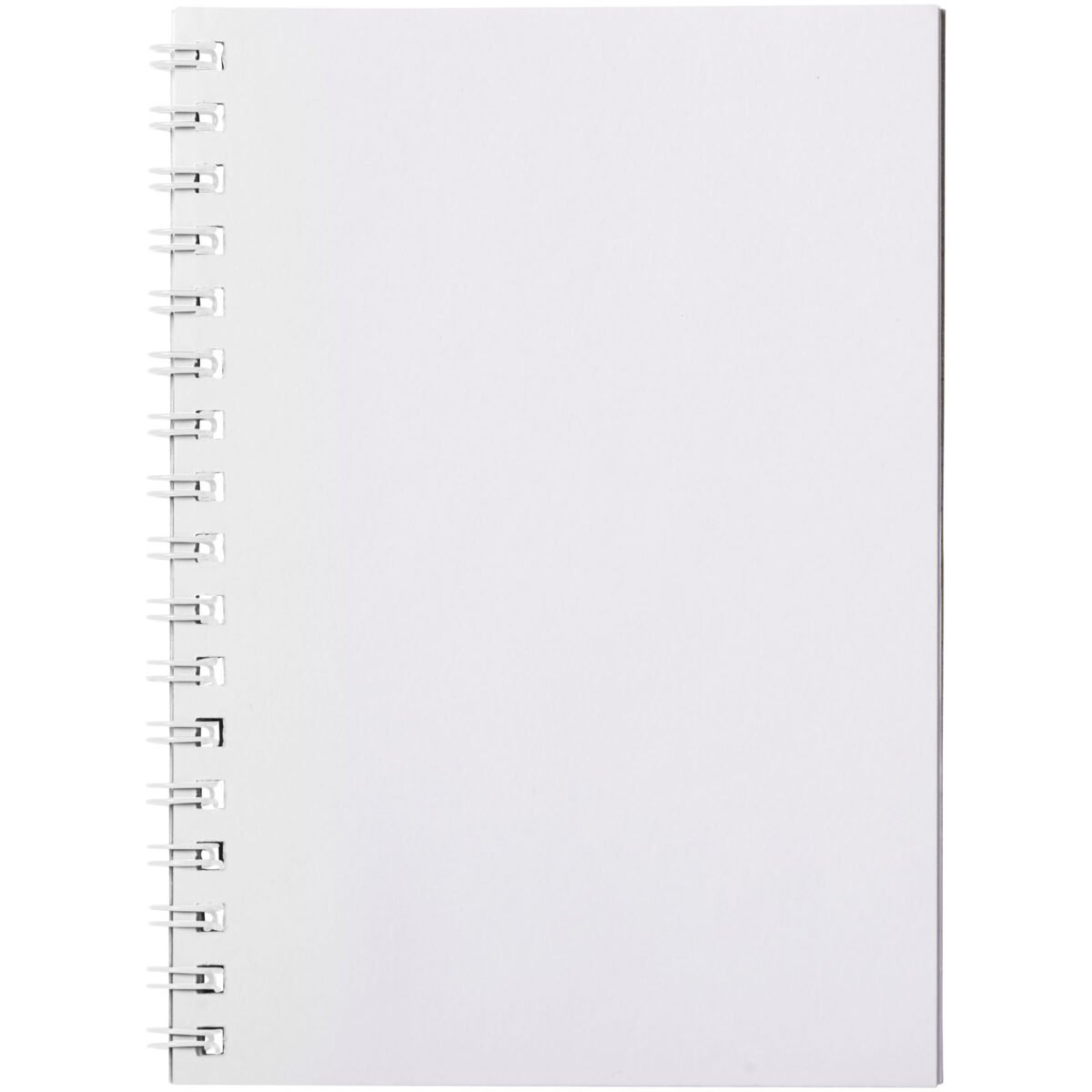 Cahier Desk-Mate® A6 à spirales. Comprend 50 feuilles de papier vierge de 80 g/m², une 1ere de couverture brillante 250 g/m² et une couverture transparente en polypropylène 450 microns. Spirales noires ou blanches. Vous pouvez personnaliser les pages de ce carnet avec n’importe quel motif – que vous souhaitiez du papier ligné, avec des carrés ou des points – tout est possible !