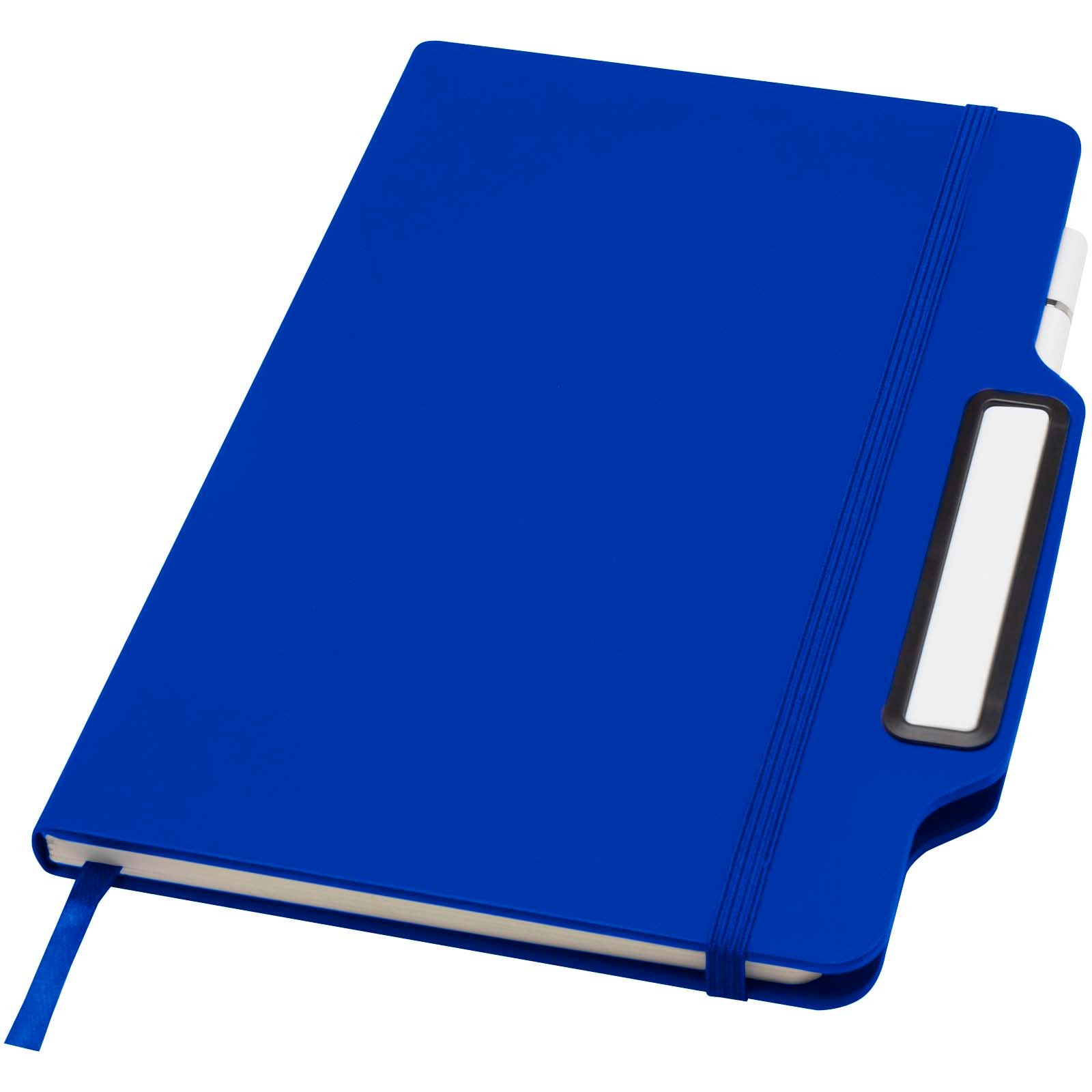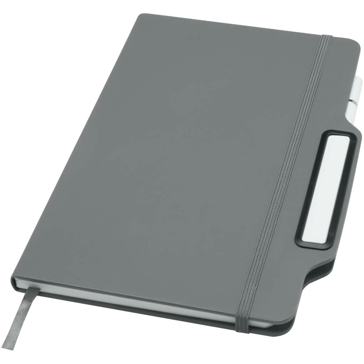 Le carnet de notes A5 à couverture rigide avec stylo/crayon combiné Nexus comprend 80 feuilles lignées de couleur crème en papier 70 g/m², des coins arrondis, une fermeture élastique et un ruban marque-page. Le stylo est double : stylo à encre noire d’un côté et crayon de l’autre. Longueur d’écriture du stylo : 1000 mètres. Taille de la plume : 1,00 mm.