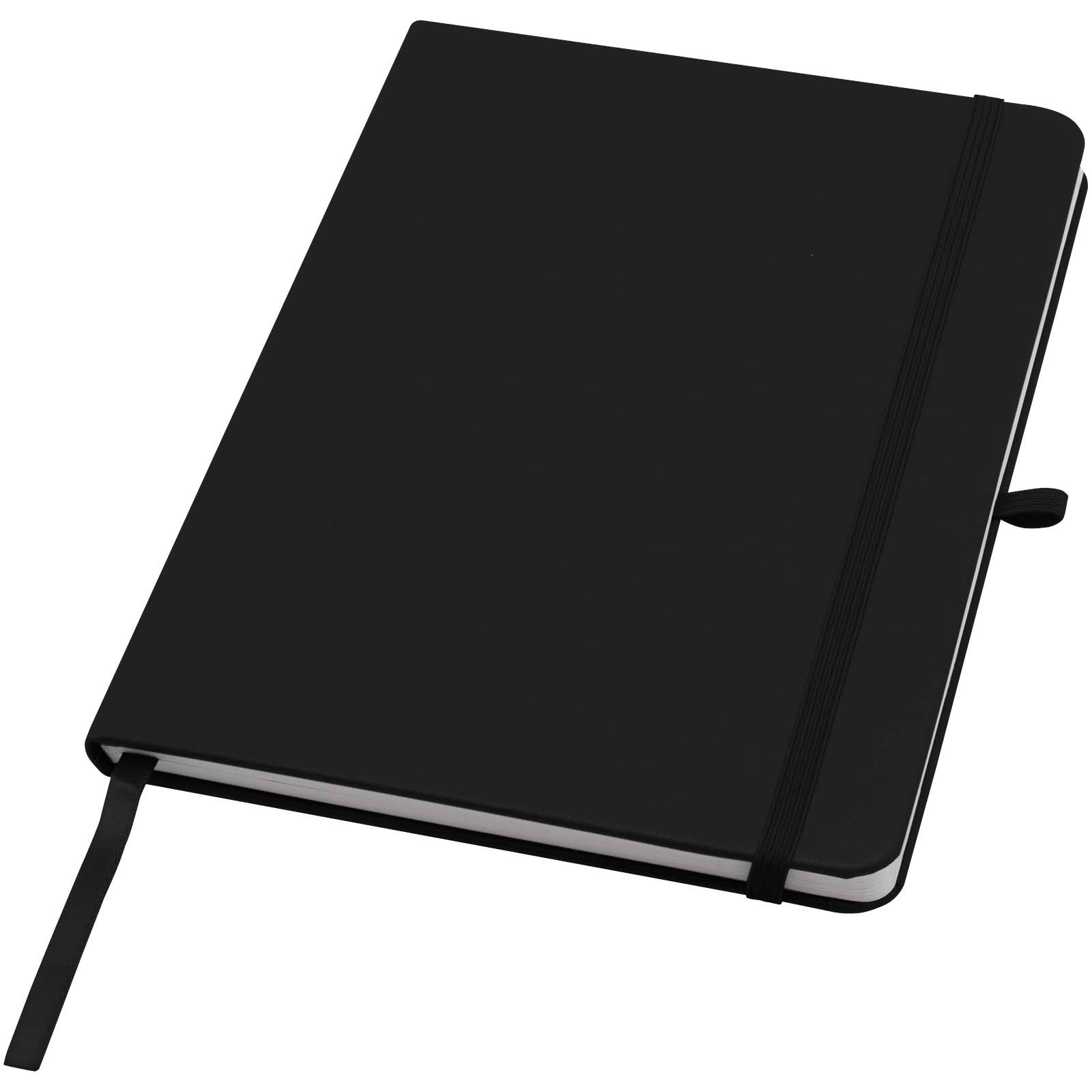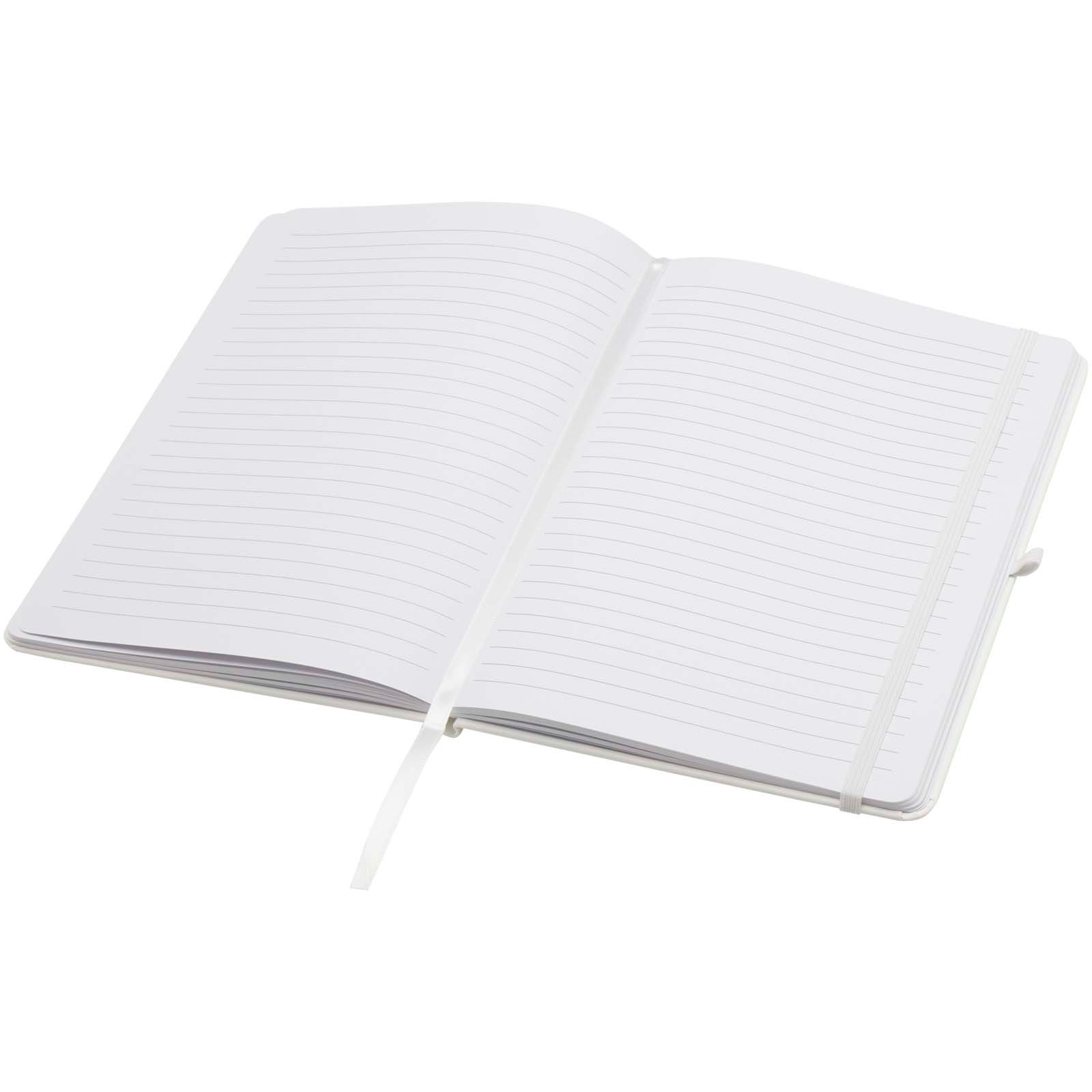 Le carnet A5 en carton recyclé à couverture rigide et coins arrondis Teak est non seulement un indispensable du bureau, mais aussi une excellente occasion de promouvoir votre marque. Le carnet comporte 96 feuilles lignées d’un grammage de 70 g/m2 et une couverture douce au toucher. Il est muni d’une boucle pour stylo, d’une fermeture élastique et d’un ruban marque-page.