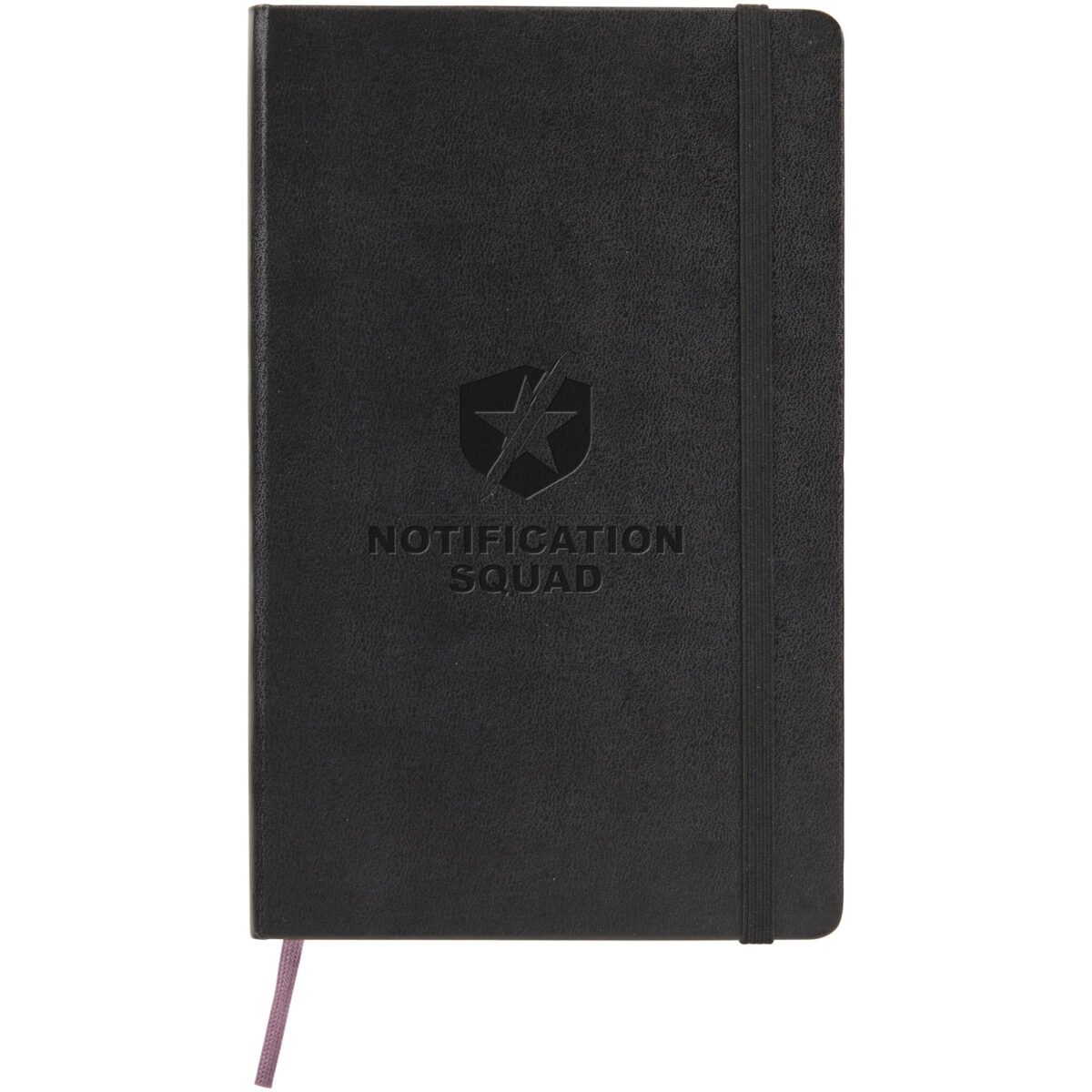 Carnet Classic Moleskine format large doté d’une couverture rigide noire, disponible dans une gamme de couleurs éclatantes et élégantes. Avec coins arrondis, fermeture élastique et ruban marque-page. Poche extensible en carton et tissu à l’intérieur de la quatrième de couverture. Contient 240 pages quadrillées couleur ivoire.