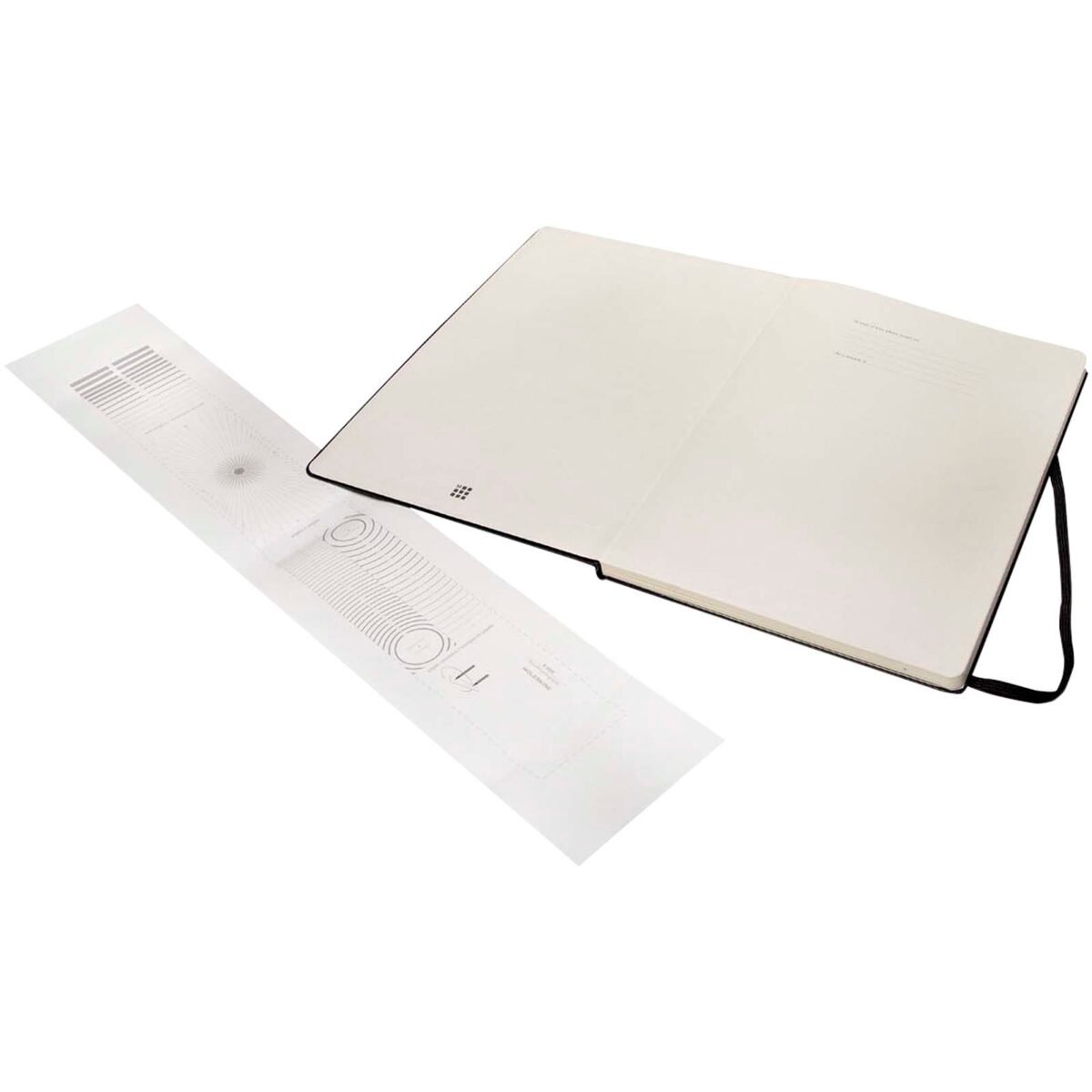 Le carnet de croquis d’art Moleskine au format A4 est relié en carton avec une couverture arrondie et un papier sans acide de qualité supérieure. Le carnet est doté d’un marque-page, d’une fermeture élastique et d’une pochette intérieure extensible contenant un texte qui raconte l’histoire de Moleskine.