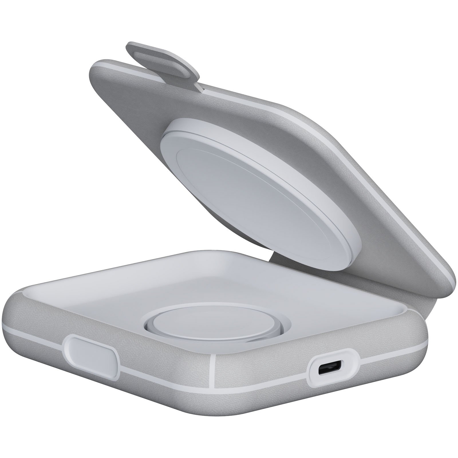 Ce chargeur magnétique de voyage sans fil, compact, pliable et élégant, vous permet de recharger votre iPhone et votre Apple Watch en même temps ! Idéal pour la recharge à la maison, au bureau ou lors d’un voyage d’une nuit. Comprend 1 tapis de charge sans fil magnétique (15 W) et 1 chargeur iWatch (3 W). Entrée : Alimentation USB-C 27 W. Livré avec un câble d’alimentation USB-C de 1 mètre et un manuel d’utilisation.