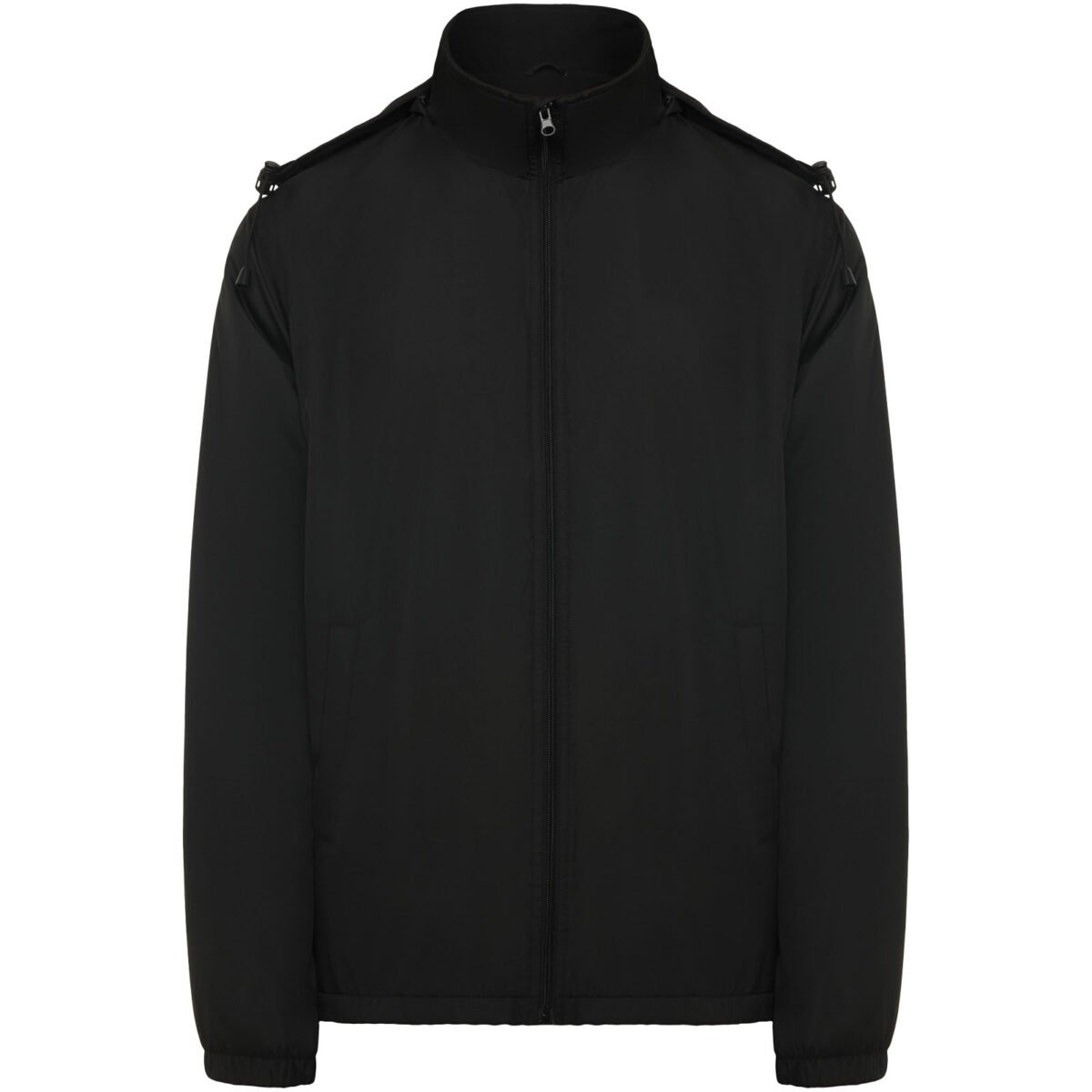 Veste imperméable légère. Col haut et capuche pliable avec ajusteurs. Doublure en micropolaire. Fermeture zippée frontale et protège-menton. Poignets élastiques. Deux poches latérales avec fermeture éclair. Poche poitrine intérieure gauche. Étiquette détachable. Imperméable. Coupe-vent. Le mannequin Homme mesure 184 cm et porte la taille L, le mannequin Femme mesure 174 cm et porte la taille S.