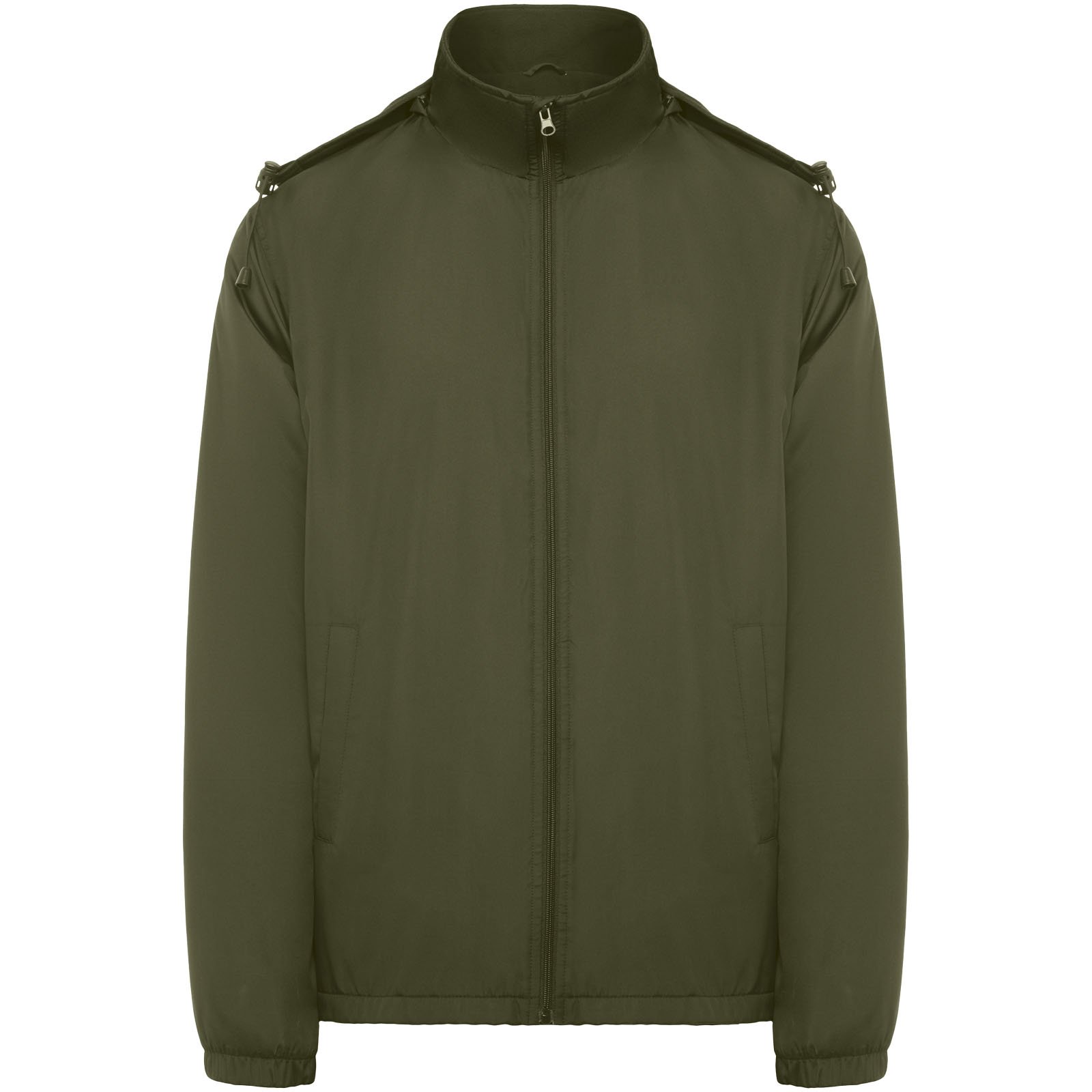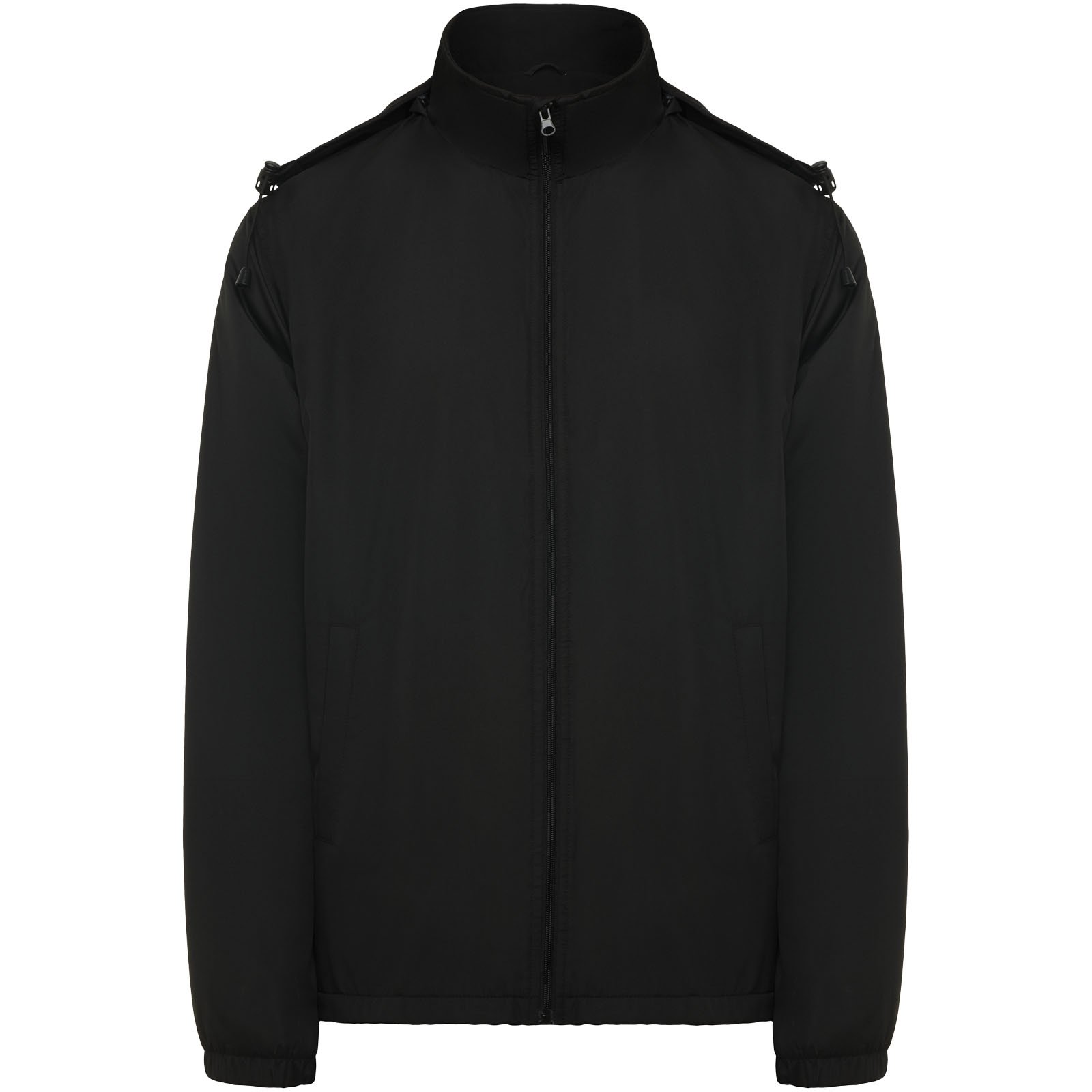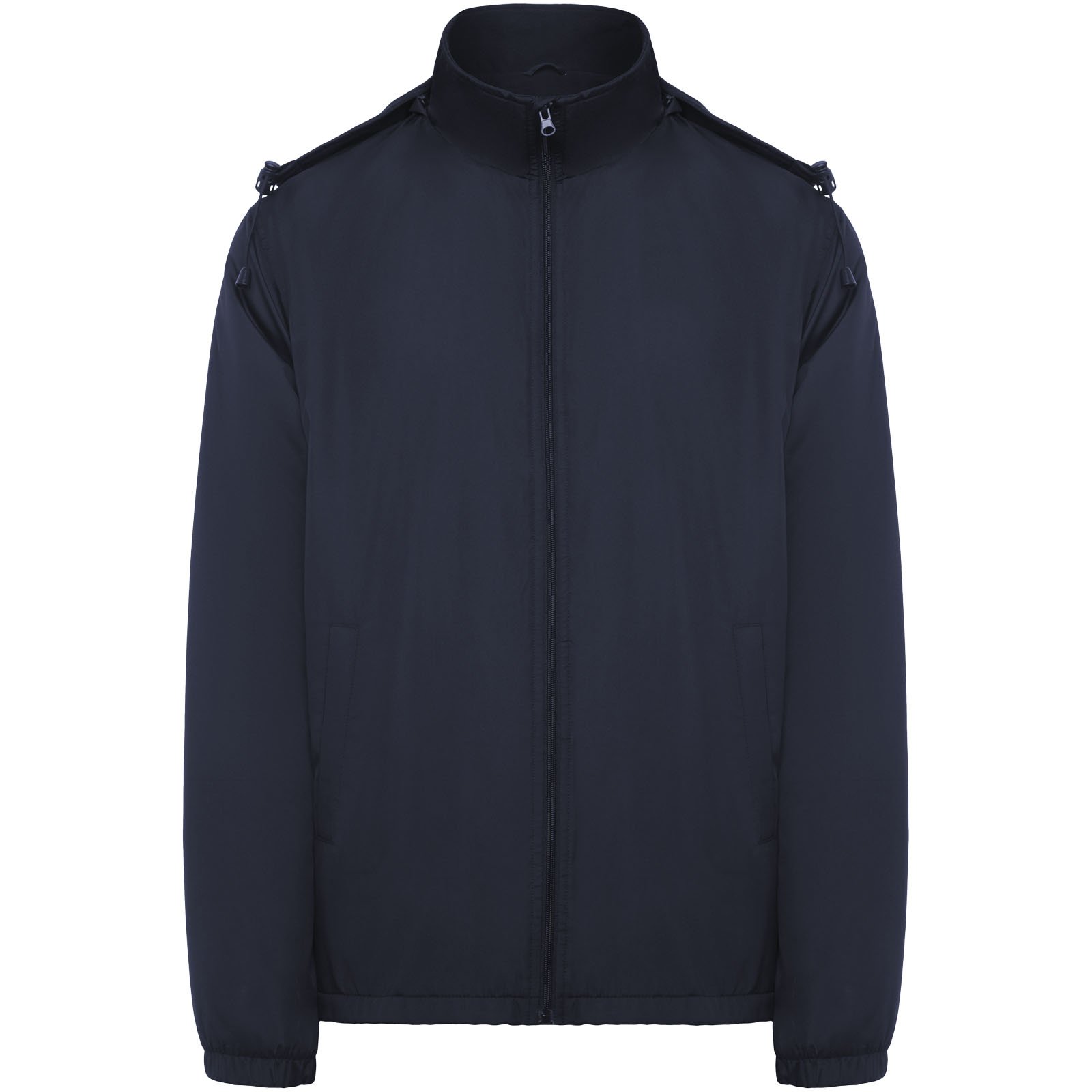 Veste imperméable légère. Col haut et capuche pliable avec ajusteurs. Doublure en micropolaire. Fermeture zippée frontale et protège-menton. Poignets élastiques. Deux poches latérales avec fermeture éclair. Poche poitrine intérieure gauche. Étiquette détachable. Imperméable. Coupe-vent. Le mannequin Homme mesure 184 cm et porte la taille L, le mannequin Femme mesure 174 cm et porte la taille S.
