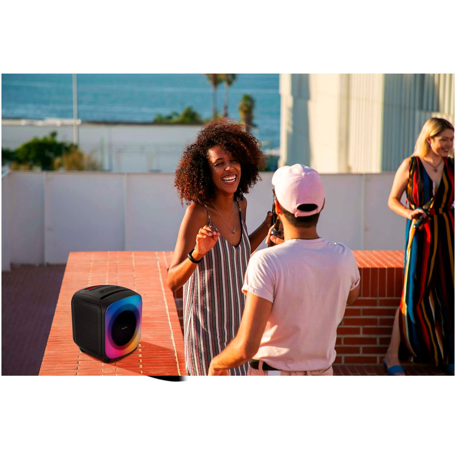 L’enceinte karaoke Jaia délivre un son de haute qualité de 40 W, pour des fêtes encore plus belles. Elle propose jusqu’à 6 effets lumineux vibrants pour créer l’atmosphère parfaite. Ajustez votre son avec les basses réglables pour une expérience d’écoute plus riche. Connectez facilement d’autres appareils grâce à l’entrée AUX IN et à l’entrée microphone. Sa puissante batterie offre jusqu’à 9 heures d’autonomie avec une seule charge de 6 heures, pour une écoute jusqu’au bout de la nuit.