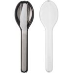 Cet ensemble de couverts Ellipse élégant et pratique comprend un couteau, une fourchette et une cuillère, tous en acier inoxydable. Les couverts sont rangés dans un support plastique compact. Passe au lave-vaisselle.