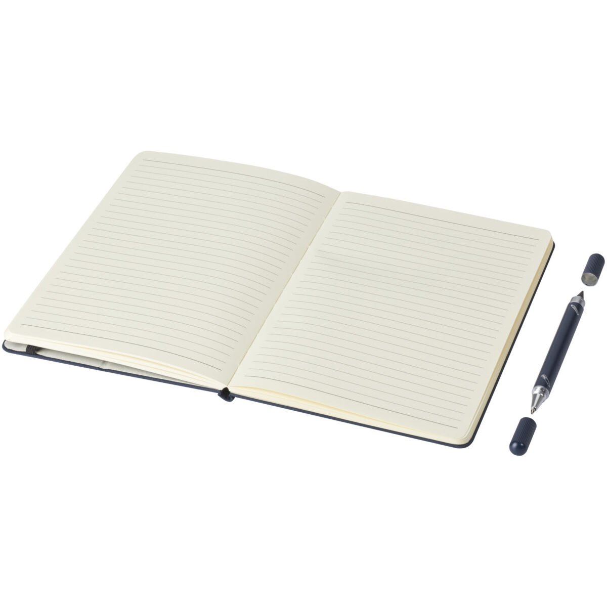 L’ensemble stylo bille et carnet de notes Skribo certifié RCS est partiellement fabriqué à partir de polyester recyclé post-consommation, ce qui en fait un choix plus durable puisqu’il contribue à réduire l’utilisation de matières premières vierges. Il comprend un stylo bille à encre bleue et 80 feuilles lignées de couleur crème avec du papier recyclé de 80 g/m2 provenant de sources durables. La longueur d’écriture du stylo est de 1 000 mètres.