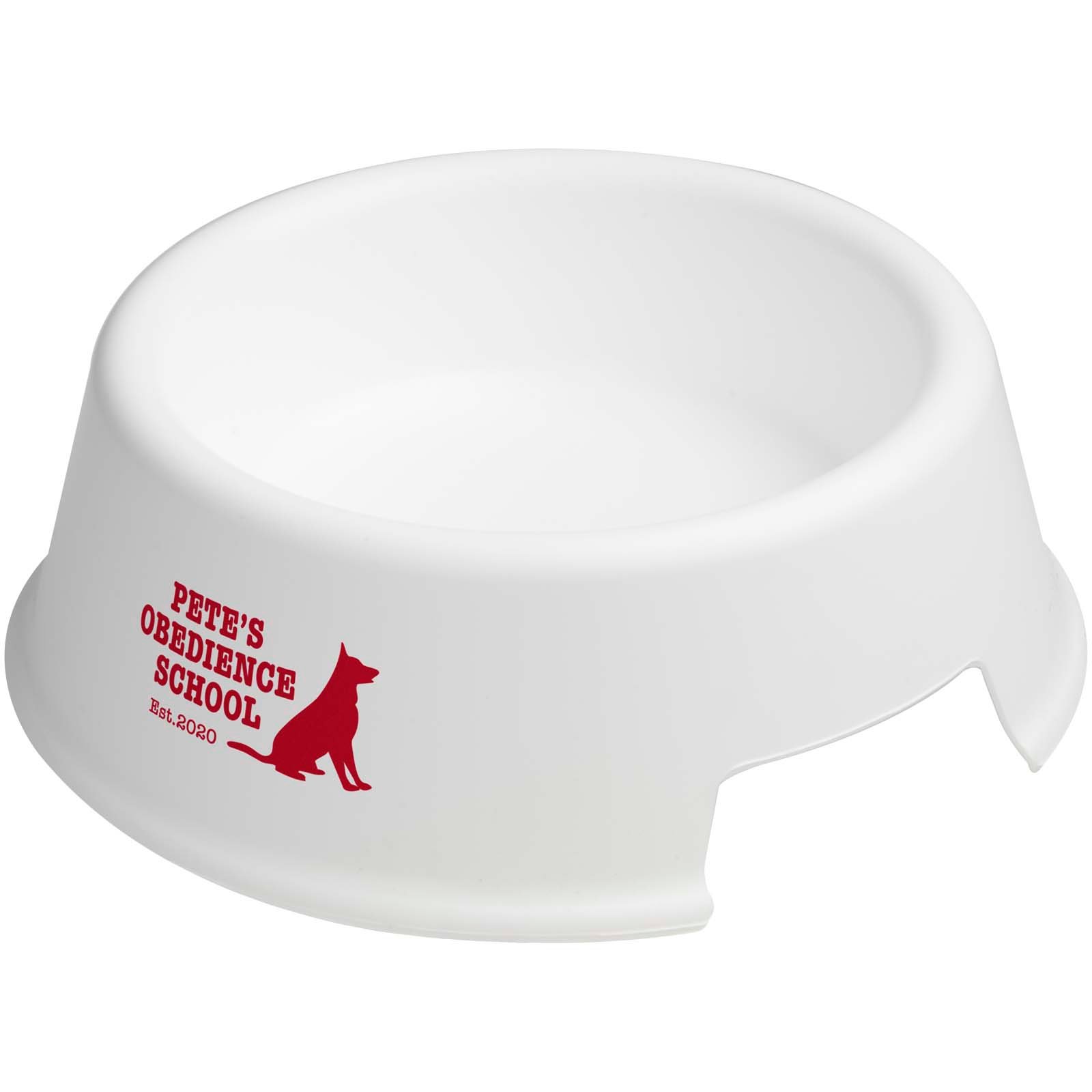 Gamelle pour chien en plastique avec pieds en caoutchouc. Capacité de 450 ml. La gamelle principale est entièrement recyclable.
