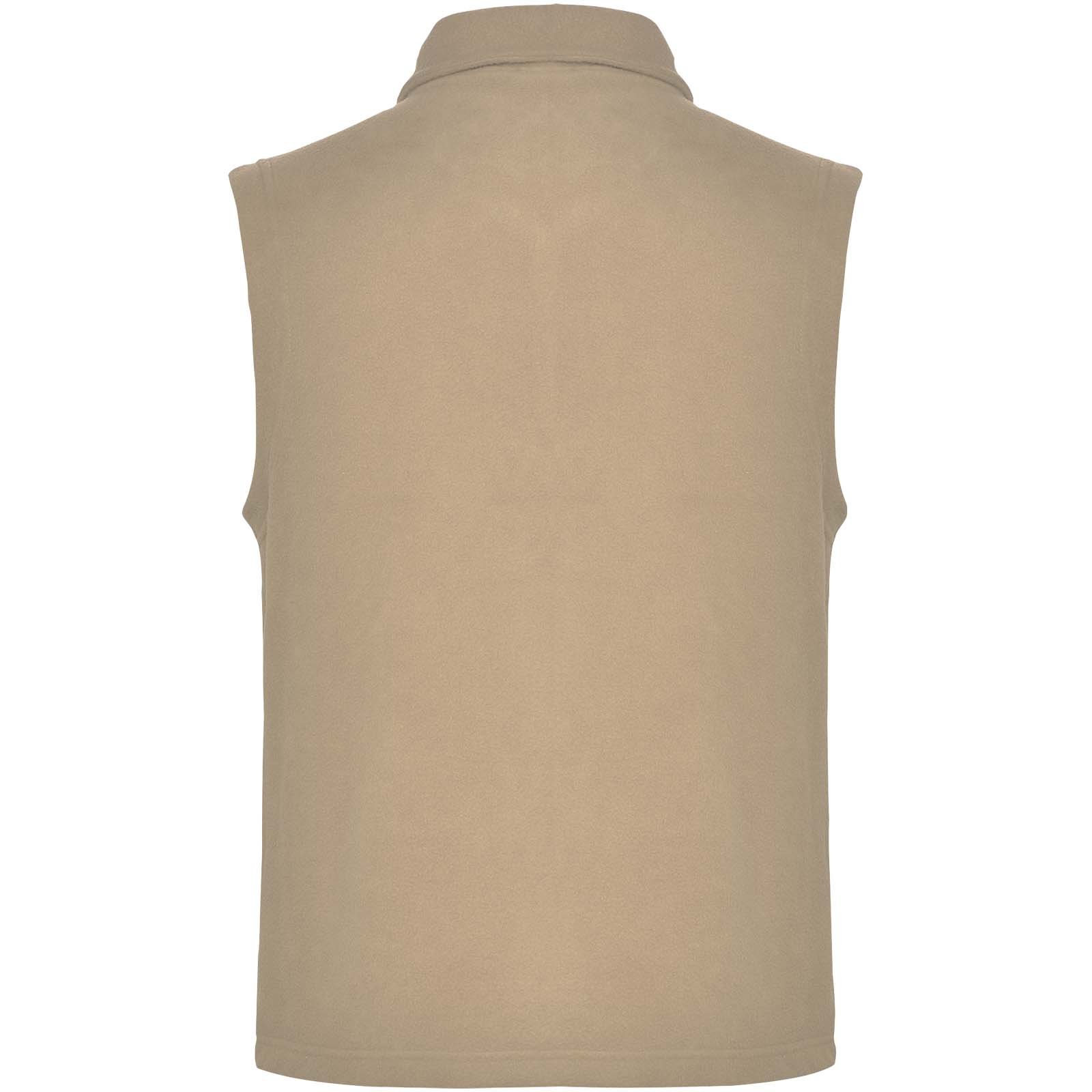 Gilet polaire avec col polo et fermeture zippée assortie. Poches latérales avec fermeture zippée assortie. Étiquette détachable. Le mannequin mesure 185 cm et porte la taille M.