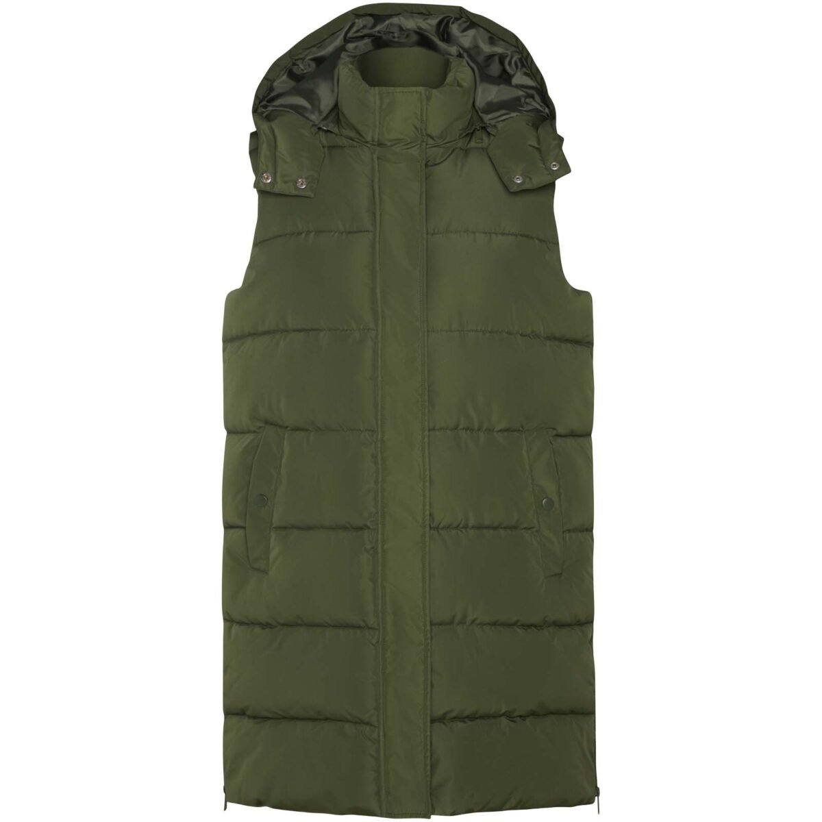 Gilet rembourré avec capuche amovible. Col montant. Fermeture zippée sur le devant dissimulée par rabat. Deux poches avec fermeture par bouton pression. Ouvertures latérales avec fermeture zippée. Accès intérieur à la poitrine. Hydrofuge.