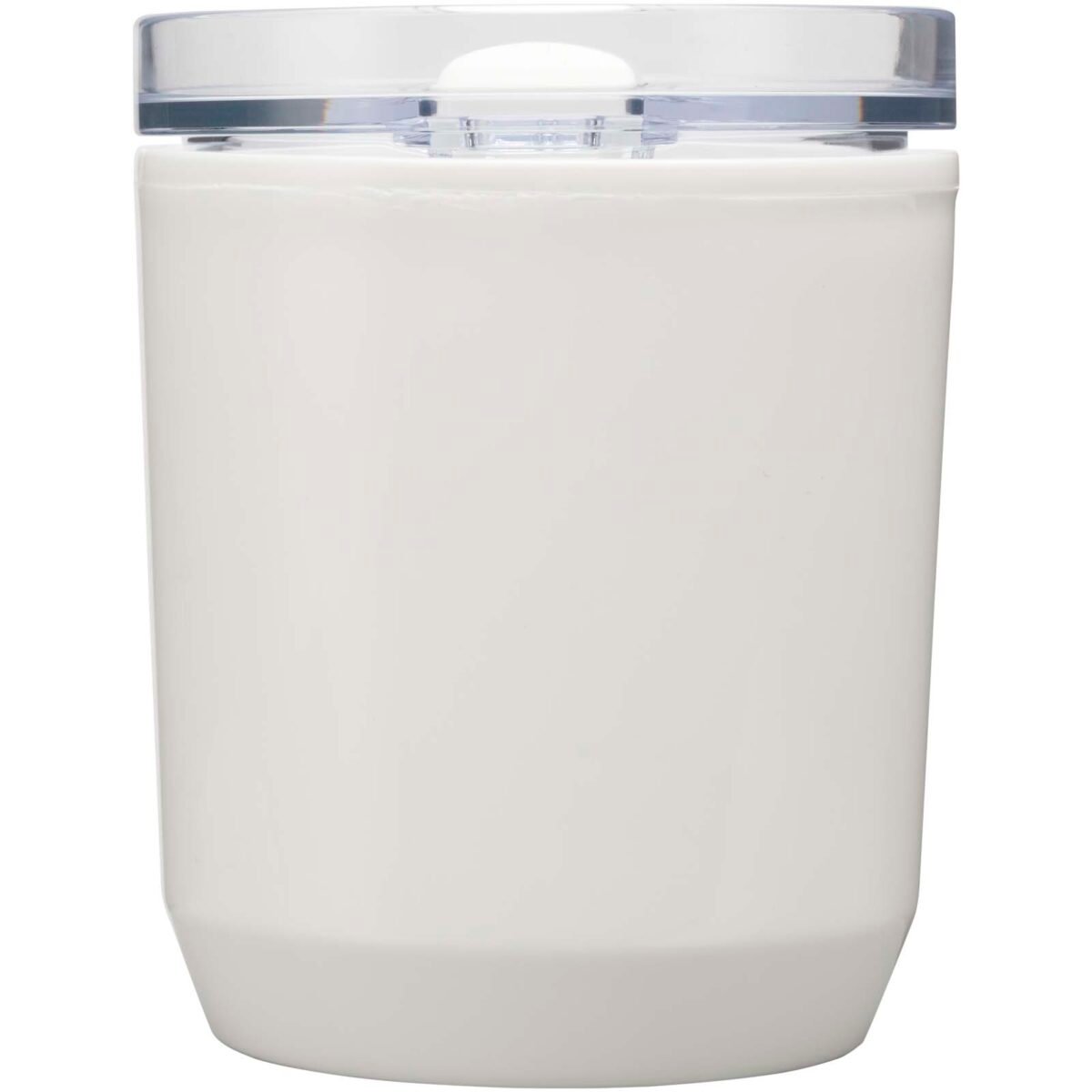 Gobelet au design simple qui s’adapte à la plupart des machines à café et des porte-gobelets de voiture. Construction à double paroi avec un extérieur en plastique PP recyclé et un intérieur en plastique PP. Le couvercle coulissant est fabriqué en plastique AS et PP. Capacité : 180 ml.