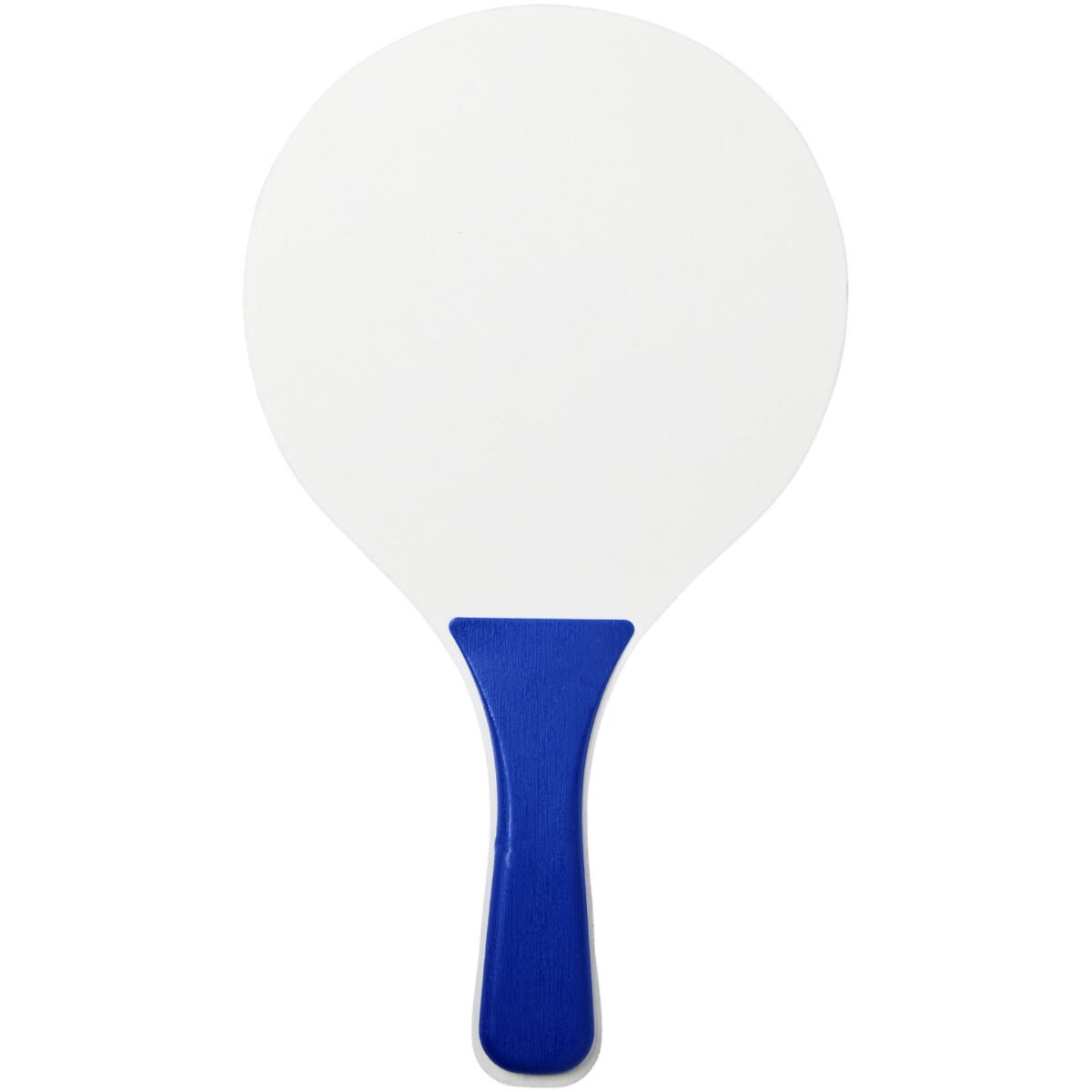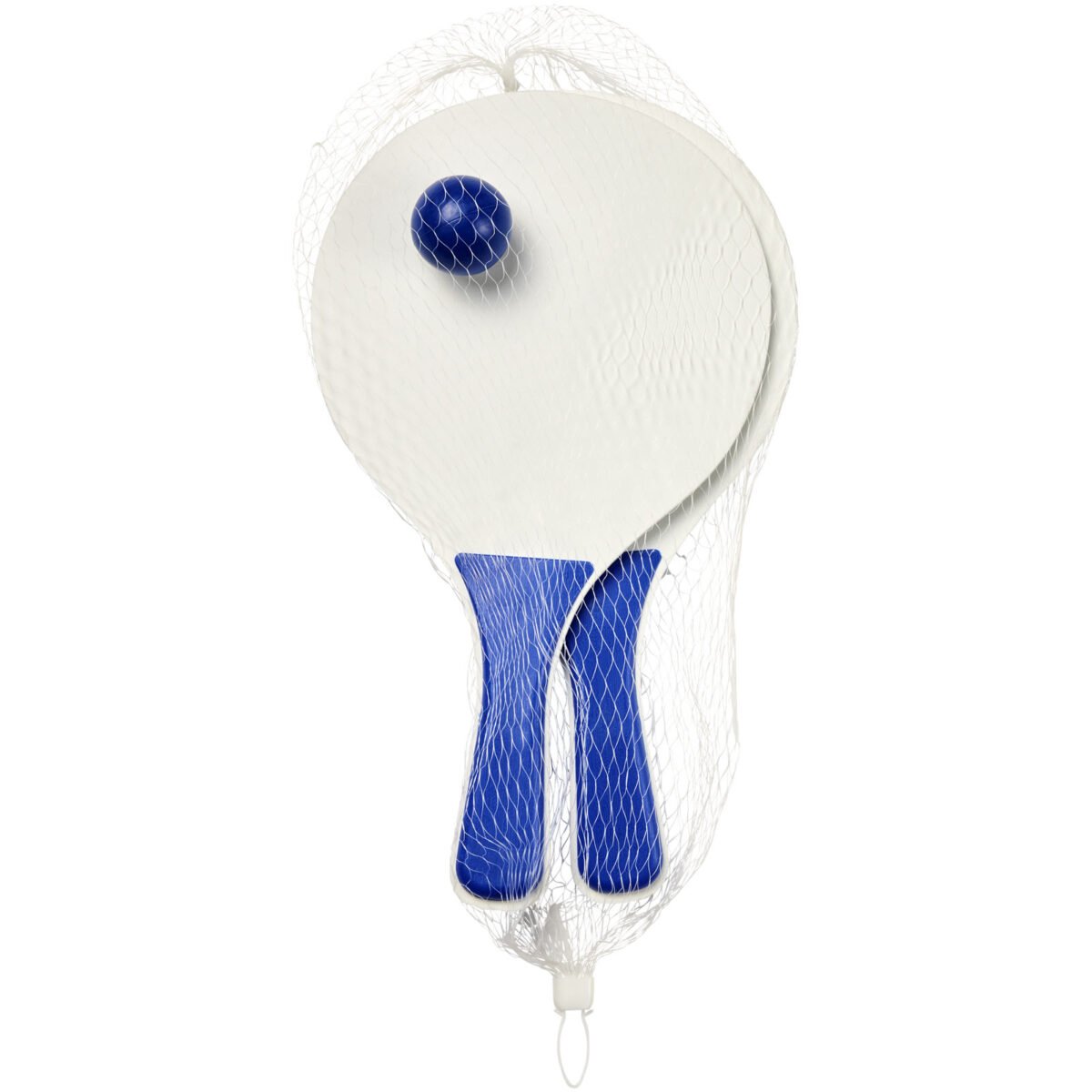 Divertissement sans fin avec ce jeu de plage proposé dans une vaste gamme de couleurs. Ce jeu de plage durable est fait en fibre de bois avec manche en PP coloré. Comprend une balle molle de la même couleur dans un emballage en filet, pour un transport facile à la plage. Avertissement ! Ne convient pas aux enfants de moins de trois ans. Petites boules. Risque d’étouffement.