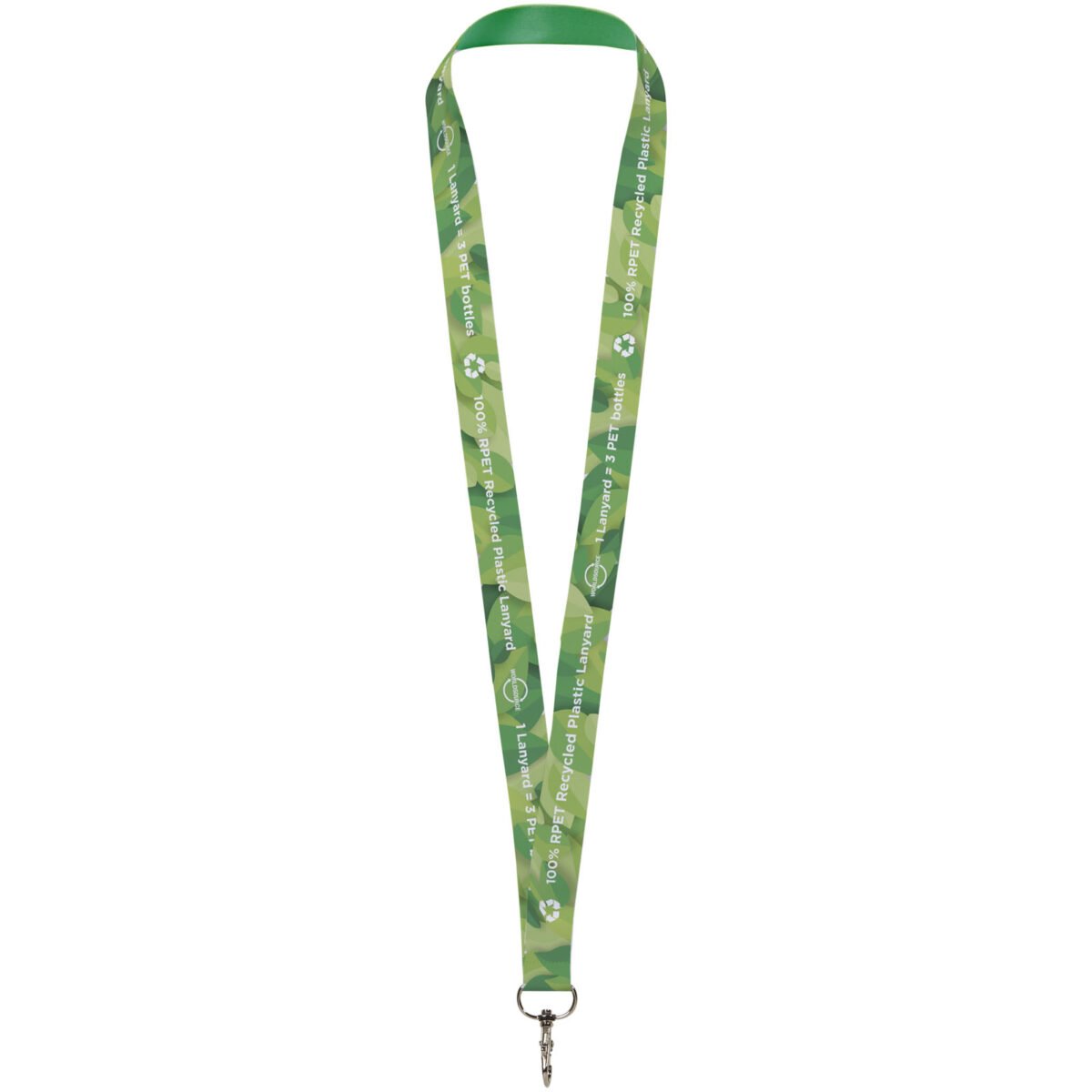 Lanyard en PET recyclé avec marquage en sublimation sur l’ensemble de la surface et crochet en métal. Le marquage peut être réalisé sur une ou sur les deux faces. Pour une impression sur les deux faces, vous pouvez choisir pour le marquage standard ou pour l’alignement des marquages. Permet d’accrocher un badge nominatif, une carte d’identité ou des clés. Disponible en 4 largeurs différentes : 10, 15, 20 et 25 mm.