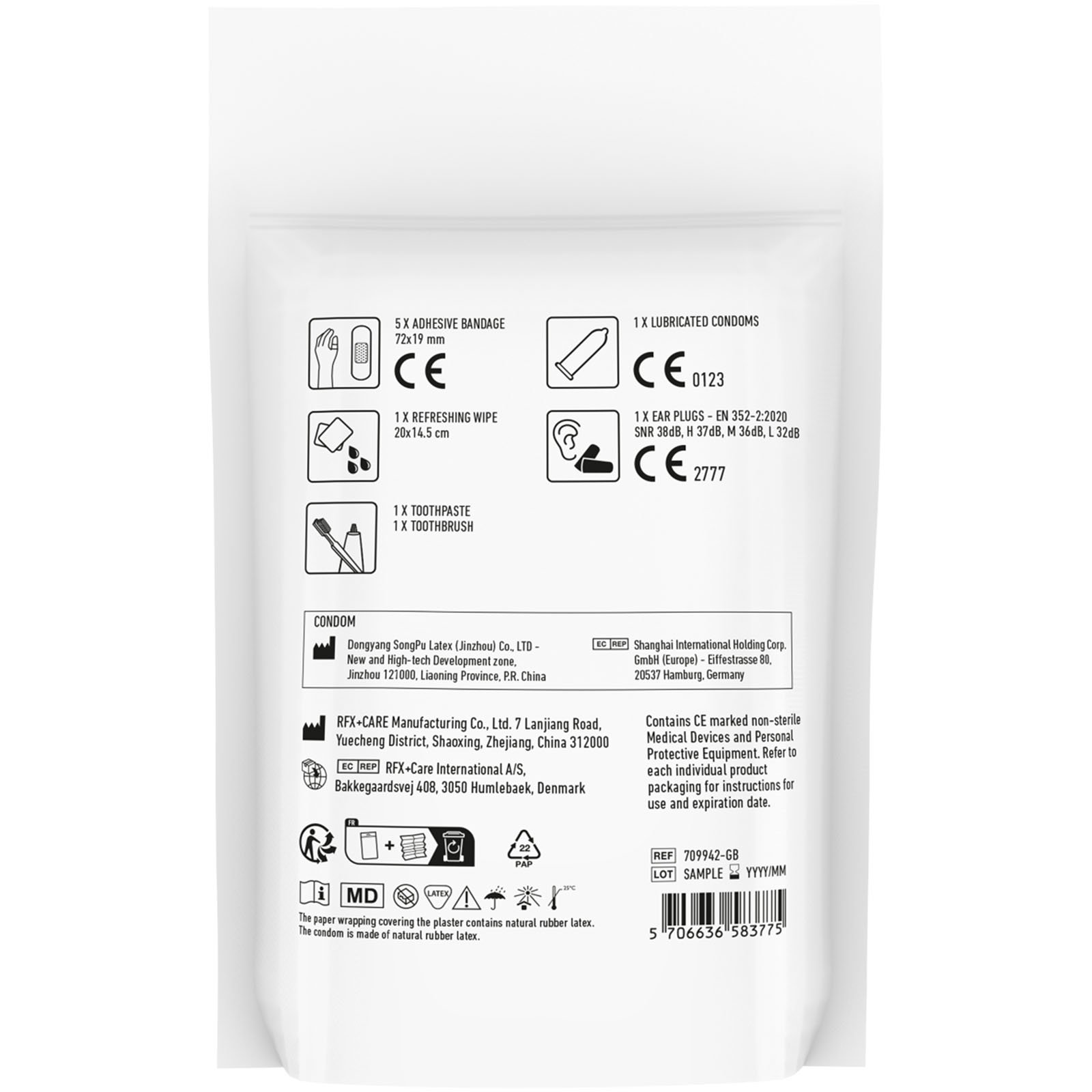 Set de voyage idéal pour les festivals, contient toutes les choses dont vous avez besoin pour passer la nuit à un festival. La taille de ce kit vous permet de le stocker facilement dans votre sac. Contient: 1 brosse à dents, 1 dentifrice, 1 bouchon d’oreille, 1 gel désinfectant, 5 pansements , 1 préservatif. Tous les contenus à l’intérieur des kits sont conformes à la législation européenne. Le prix comprend l’étiquette personnalisée. Livré en pochette papier.