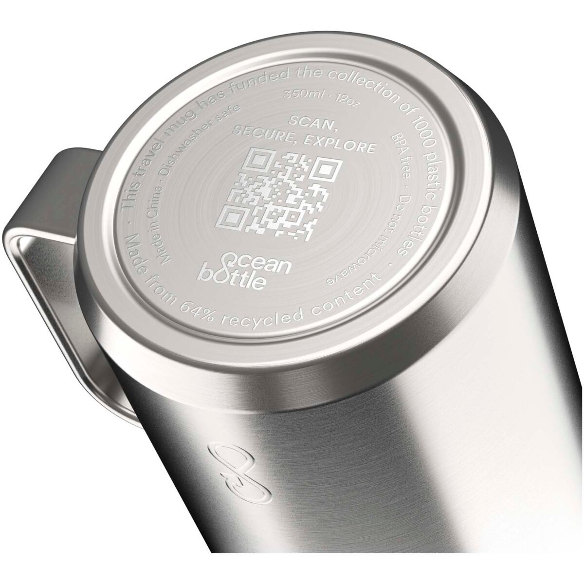 Le mug de voyage Ocean Bottle de 350 ml est doté d’une double paroi qui permet de garder les boissons chaudes jusqu’à quatre heures et froides jusqu’à dix heures. La poignée ergonomique permet de l’attacher à des sacs ou à d’autres objets pour optimiser l’espace de rangement et la capacité de transport. Chaque mug de voyage est entièrement neutre en carbone et permet la collecte de 1 000 bouteilles en plastique pour améliorer les moyens de subsistance dans les communautés côtières. Le mug est fabriqué à partir de matériaux recyclés, dont 90 % d’acier inoxydable recyclé. Livré dans un coffret cadeau en carton recyclé provenant de sources responsables.