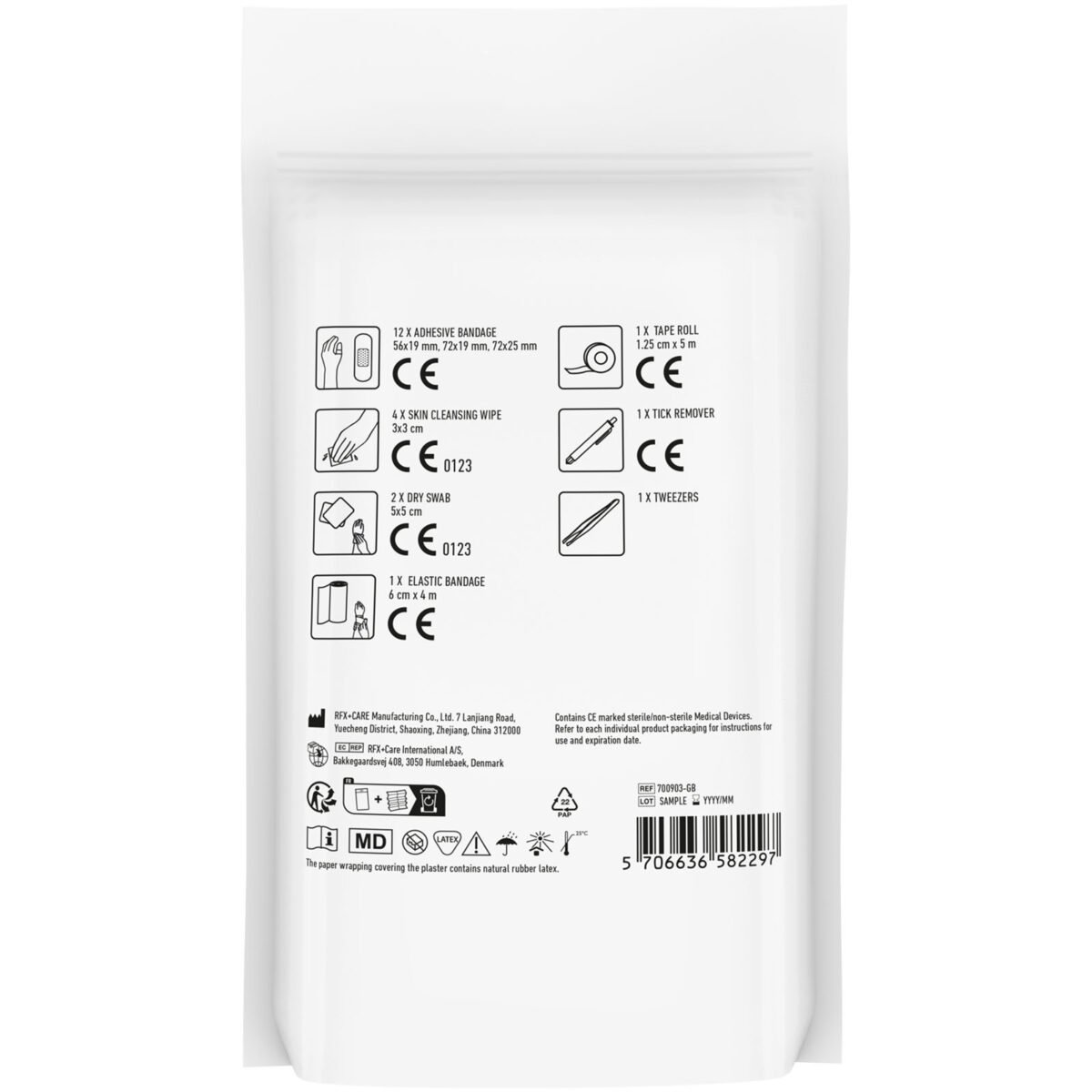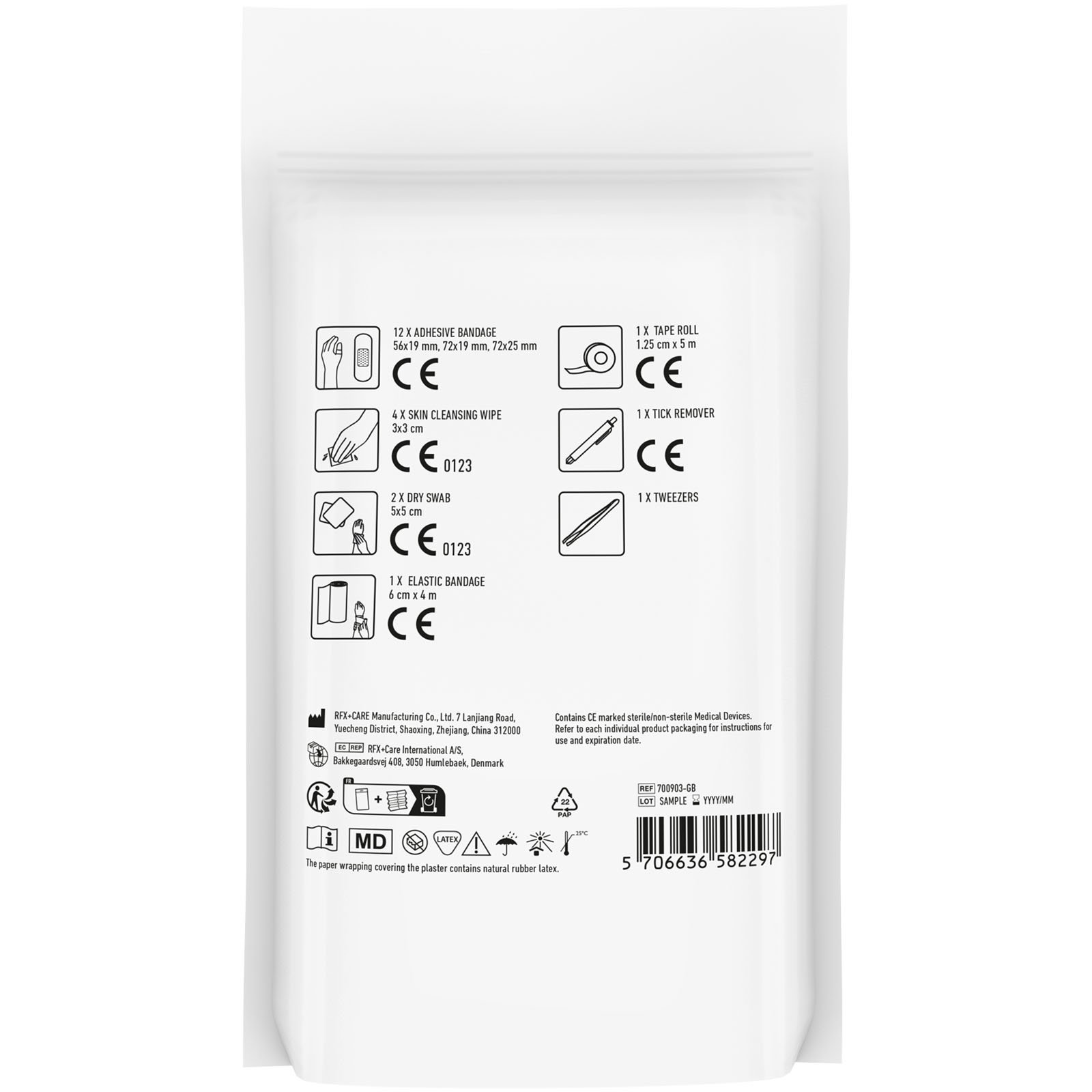 Le kit premiers secours pour tous les propriétaires d’animaux. Contient:12 pansements, 4 cotons pour nettoyer la peau, 2 cotons secs, 1 retire tique, 1 bandage élastique, 1 pince à épiler, 1 bande adhésive. Tous les contenus à l’intérieur des kits sont conformes à la législation européenne. Le prix comprend l’étiquette personnalisée. Livré en pochette papier.