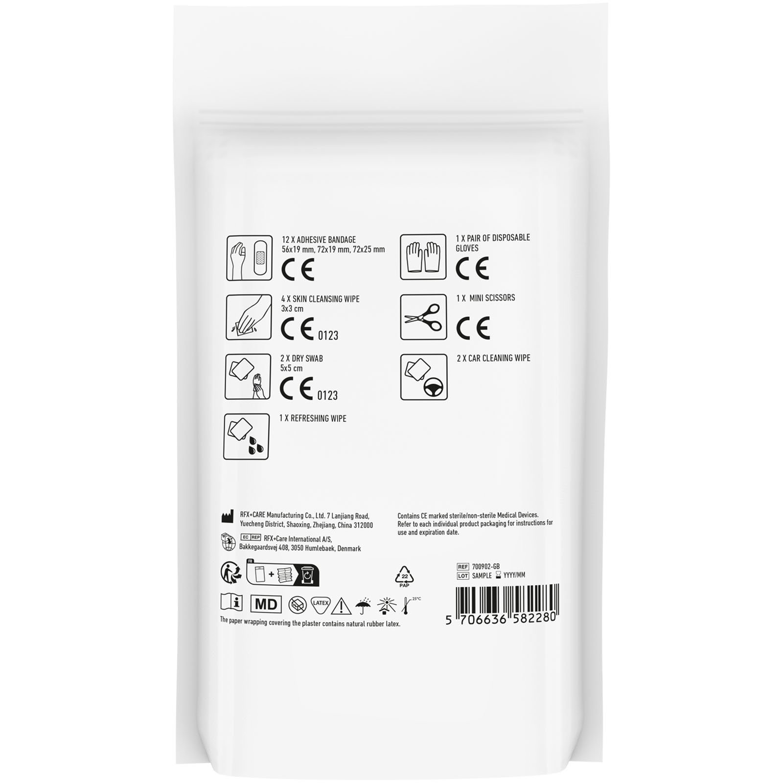 Le kit indispensable dans toutes les voitures pour parer à tous les petits incidents en voyage. Contient:12 pansements, 2 cotons pour nettoyer la peau, 2 cotons secs, 1 paire de gants jetables, 1 lingette pour la voiture (2 pack), 1 lingette rafraichissante, 1 mini paire de ciseaux. Tous les contenus à l’intérieur des kits sont conformes à la législation européenne. Le prix comprend l’étiquette personnalisée. Livré en pochette papier.