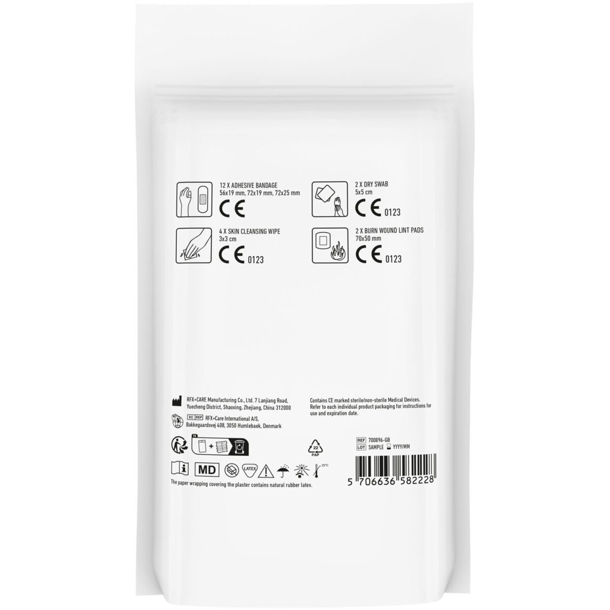 Le kit basique de premiers secours pour les voyageurs. Contient:12 pansements, 4 cotons pour nettoyer la peau, 2 cotons secs, 2 compresses pour les brulures. Tous les contenus à l’intérieur des kits sont conformes à la législation européenne. Le prix comprend l’étiquette personnalisée. Livré en pochette papier.