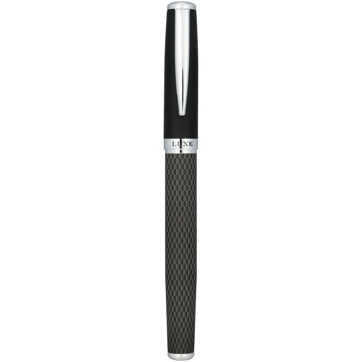 Pour une différence subtile en noire, ce lot au design exclusif composé d’un stylo à bille et d’un stylo roller a une finition imprimée en fibre de carbone. Pochette de protection de qualité incluse, emballage dans une boîte cadeau « LUXE ».