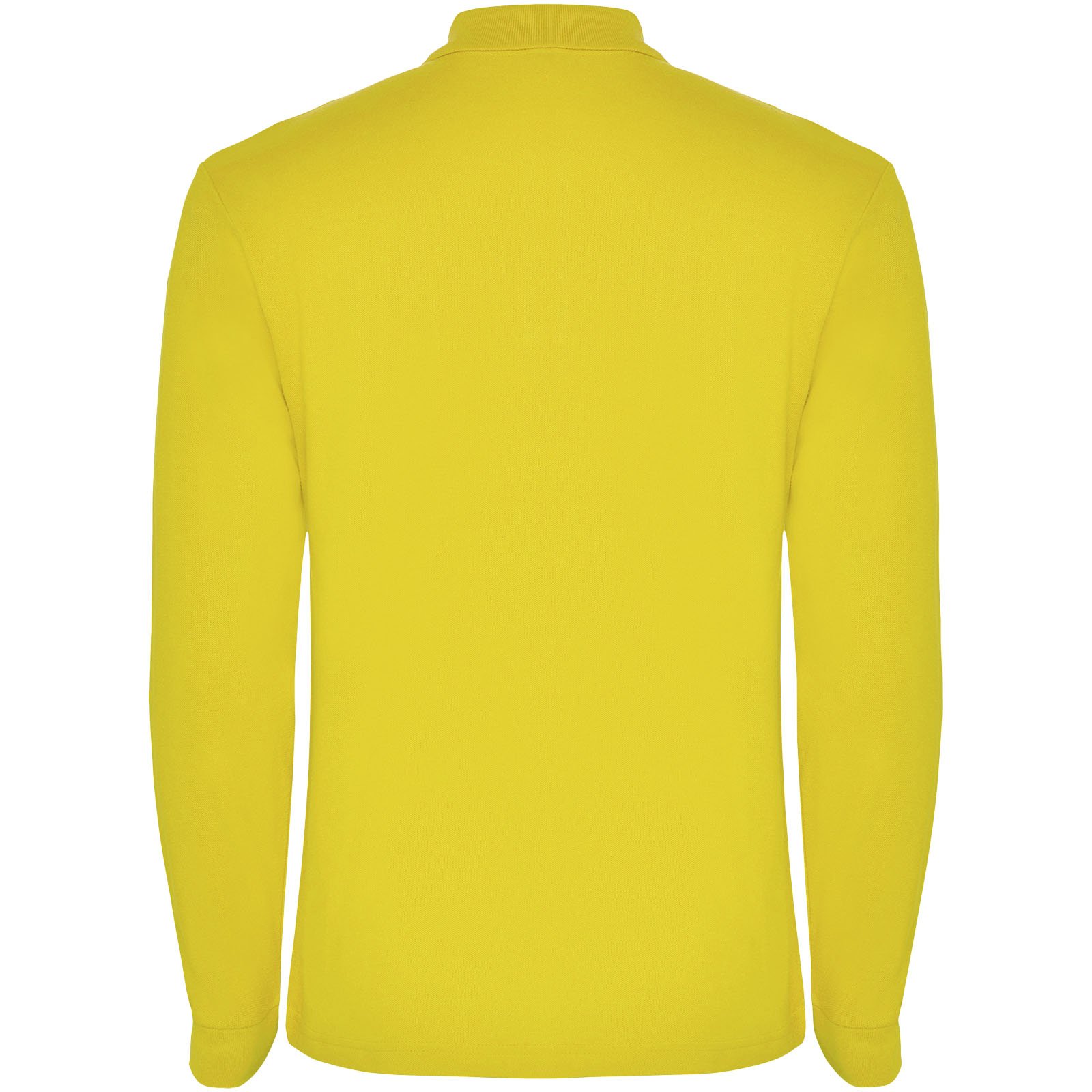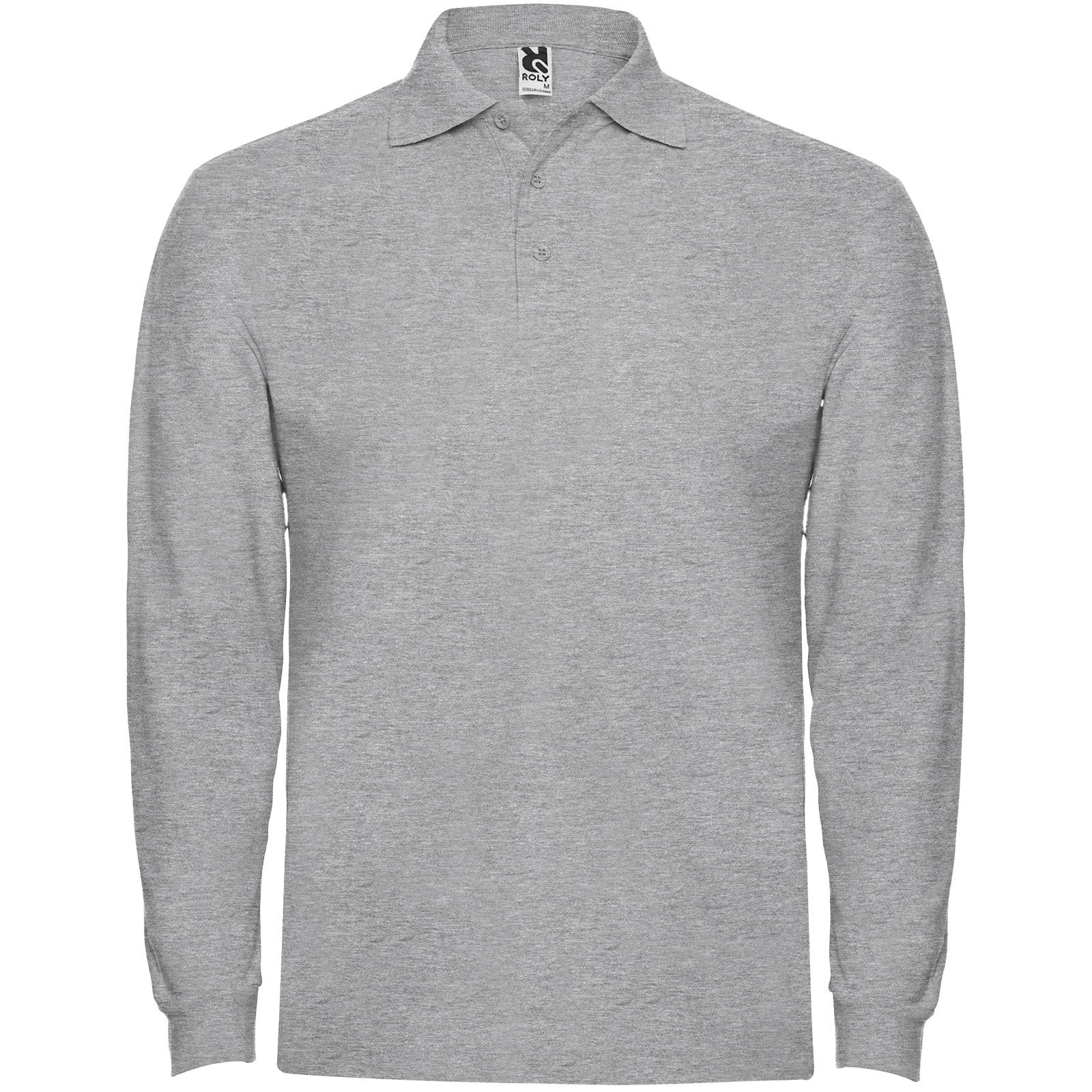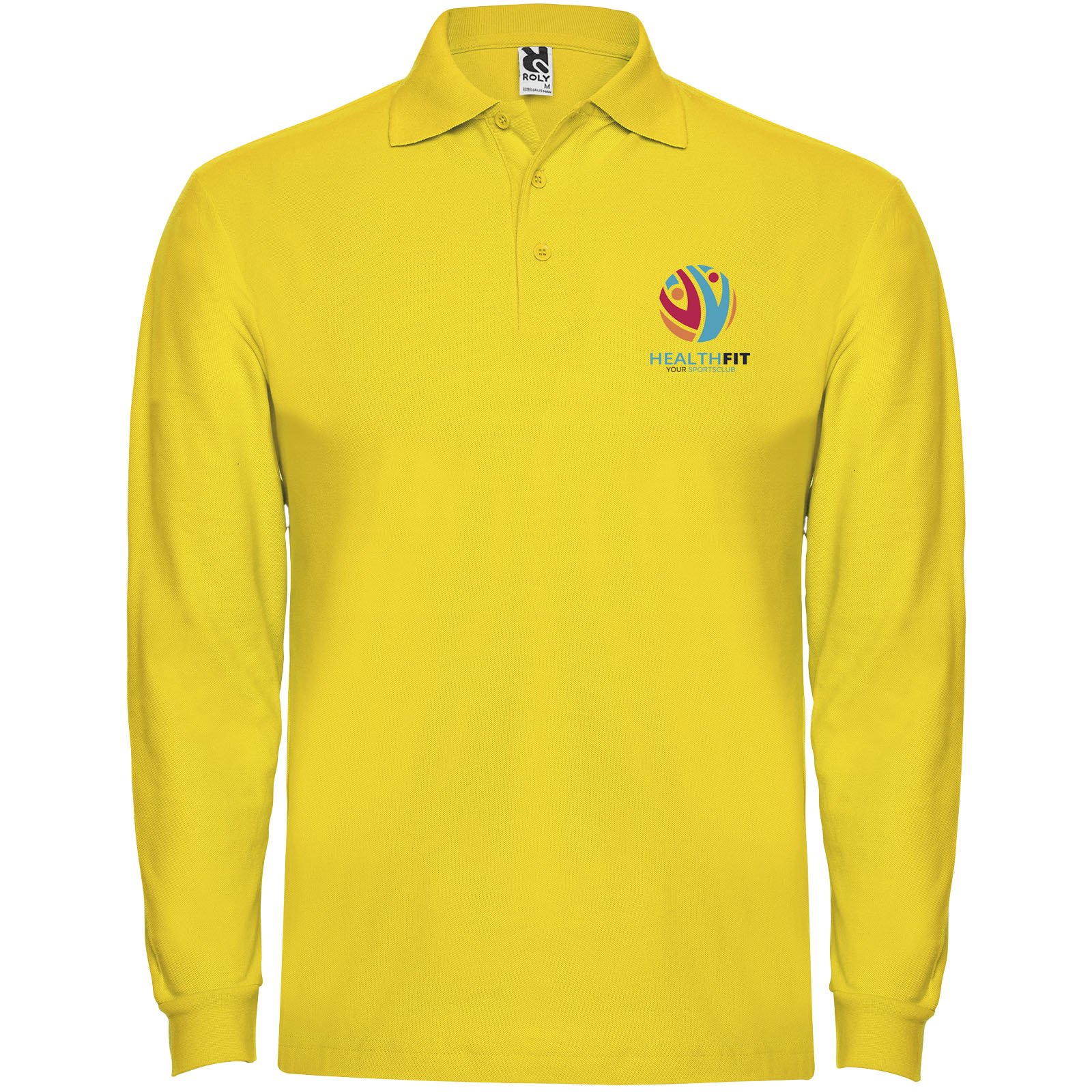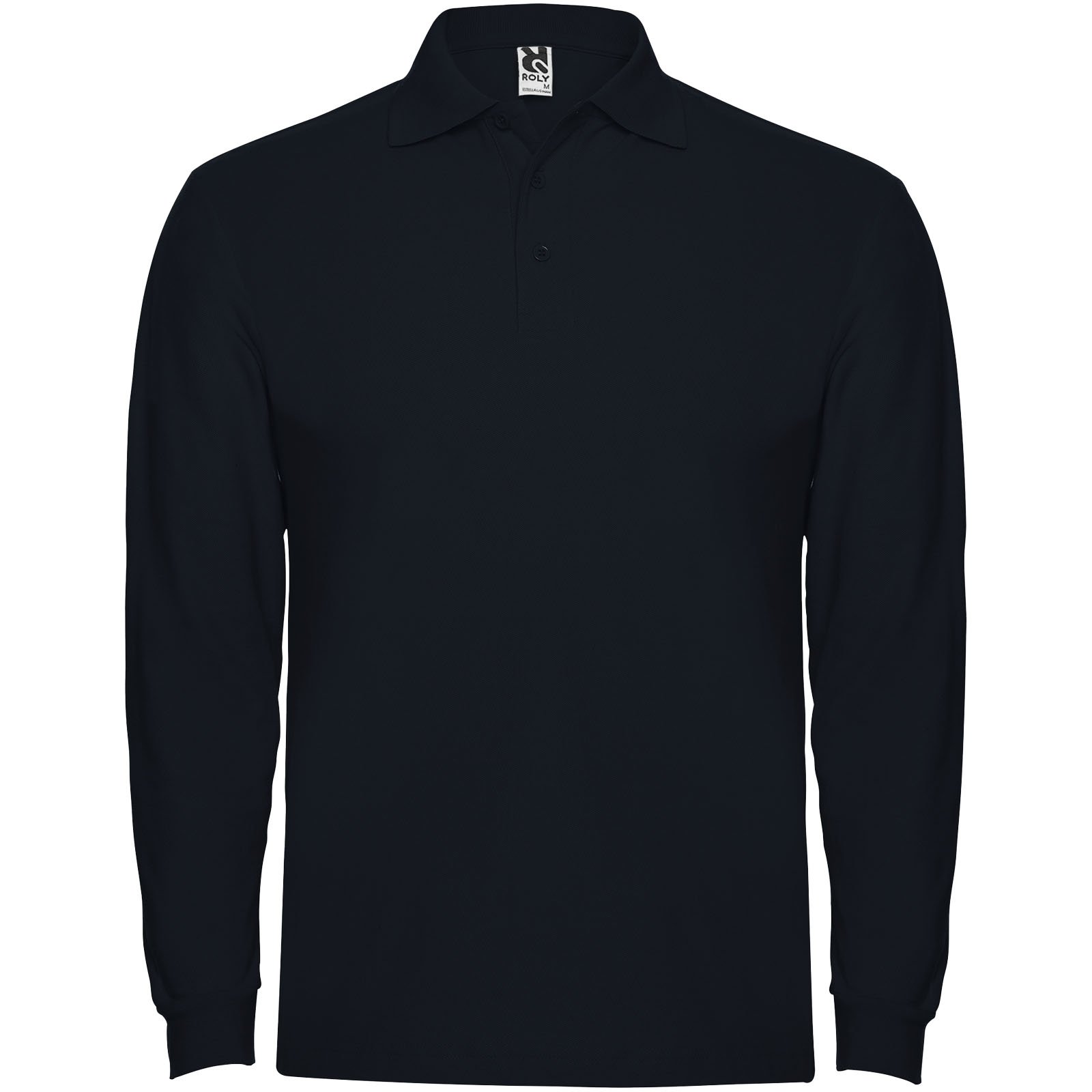 Polo à manches longues avec col et poignets côtelés, patte de boutonnage à 3 boutons et poignets côtelés 1×1 en élasthanne. Coutures recouvertes renforcées au col. Poche optionnelle. Étiquette détachable. Le mannequin mesure 190 cm et porte la taille L.