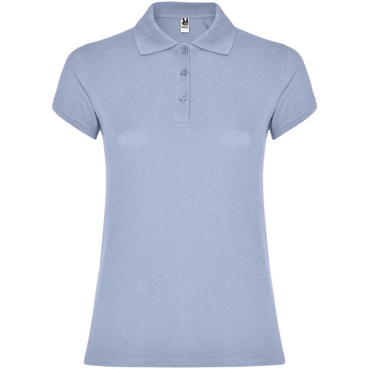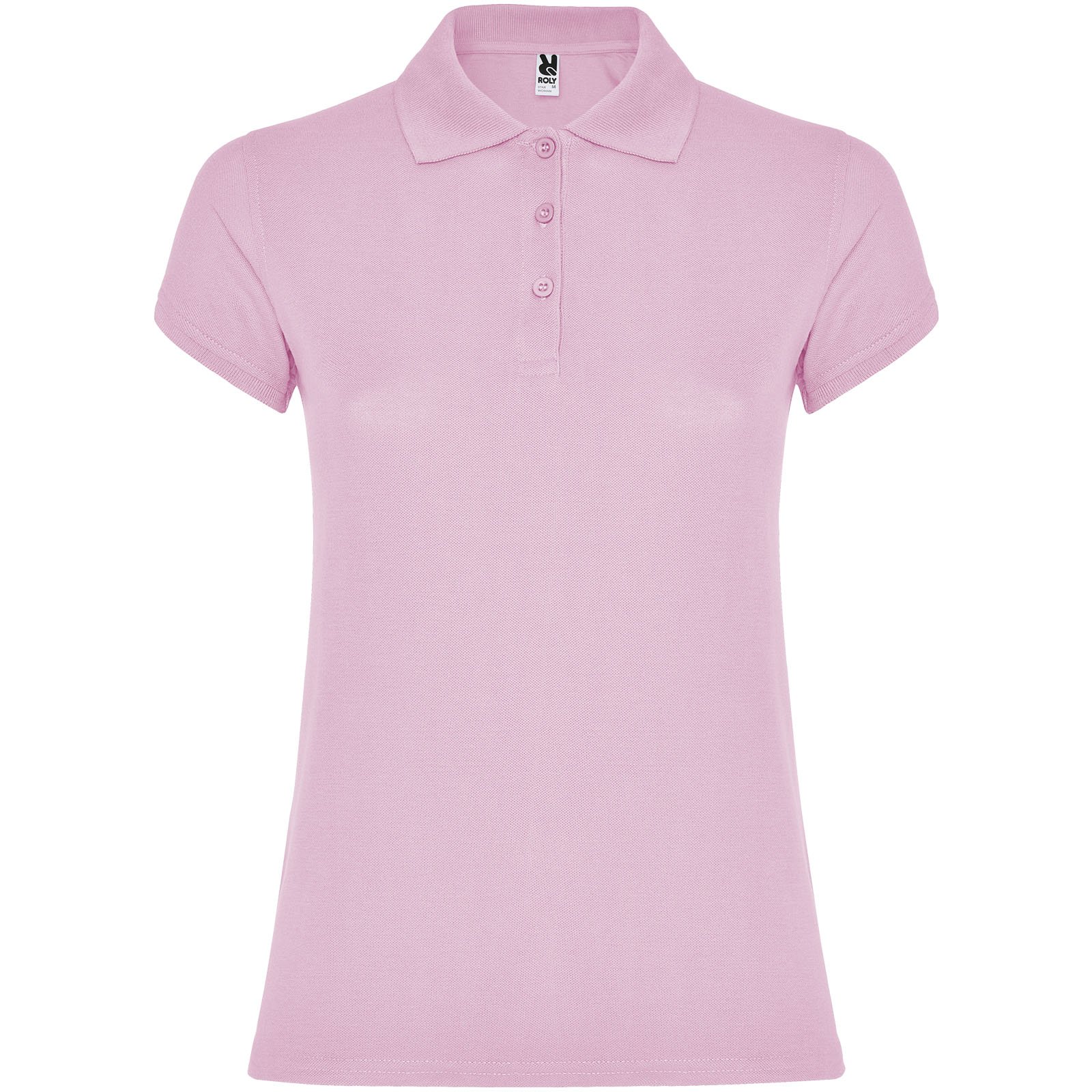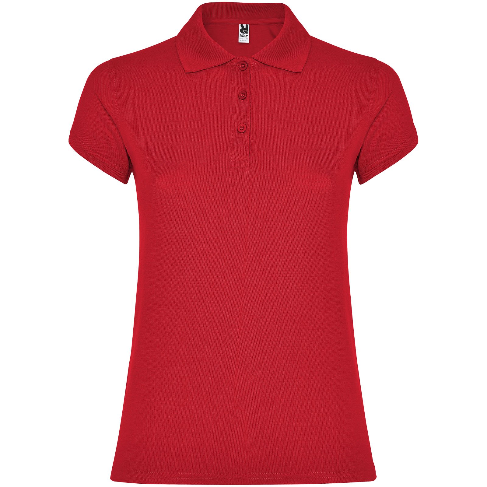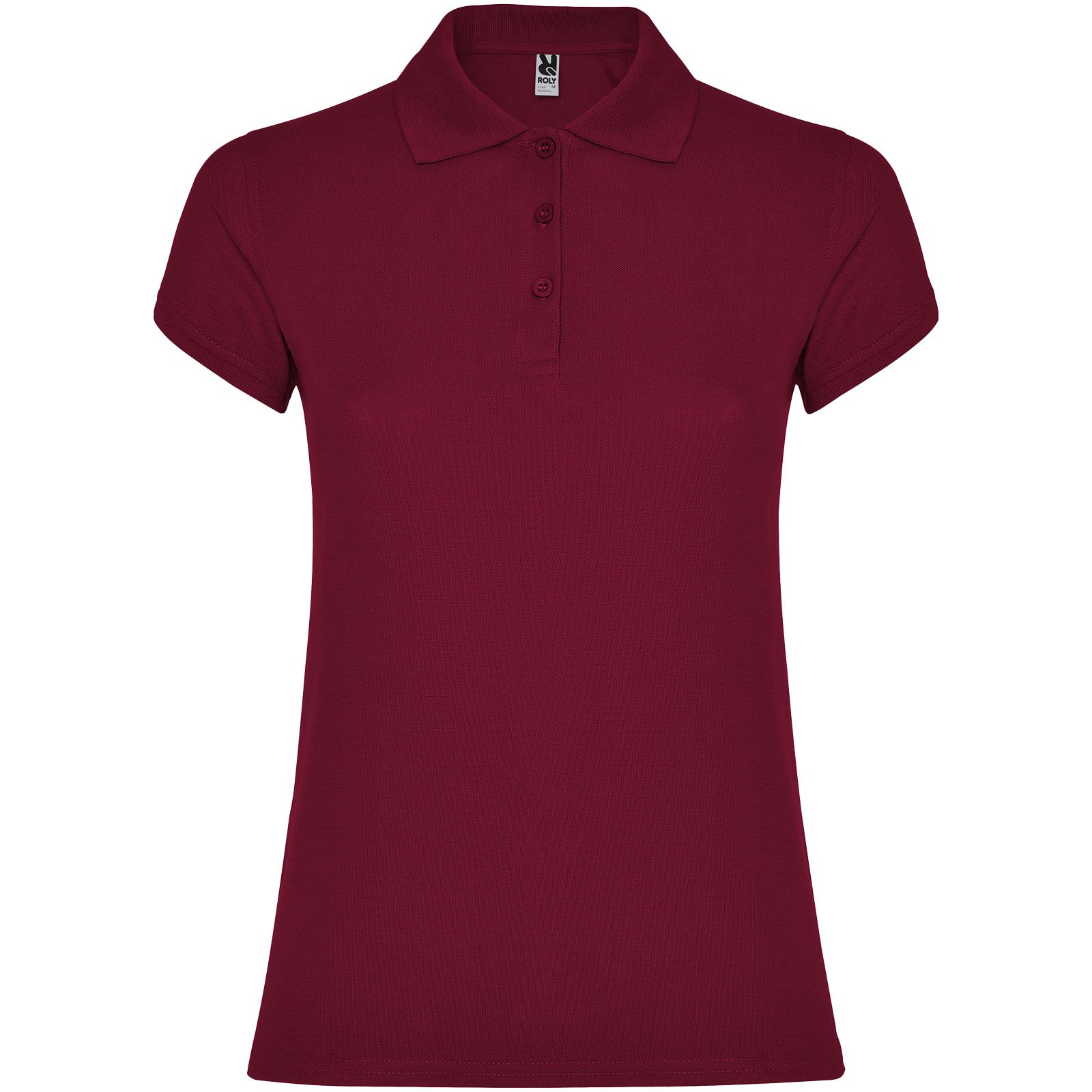 Polo à manches courtes pour femme. Coutures recouvertes renforcées à l’intérieur du col. Col et poignets en côte 1×1. Coutures latérales et coupe ajustée. Patte de boutonnage étroite à 3 boutons. Fentes latérales. Étiquette détachable. Le mannequin mesure 179 cm et porte la taille S.