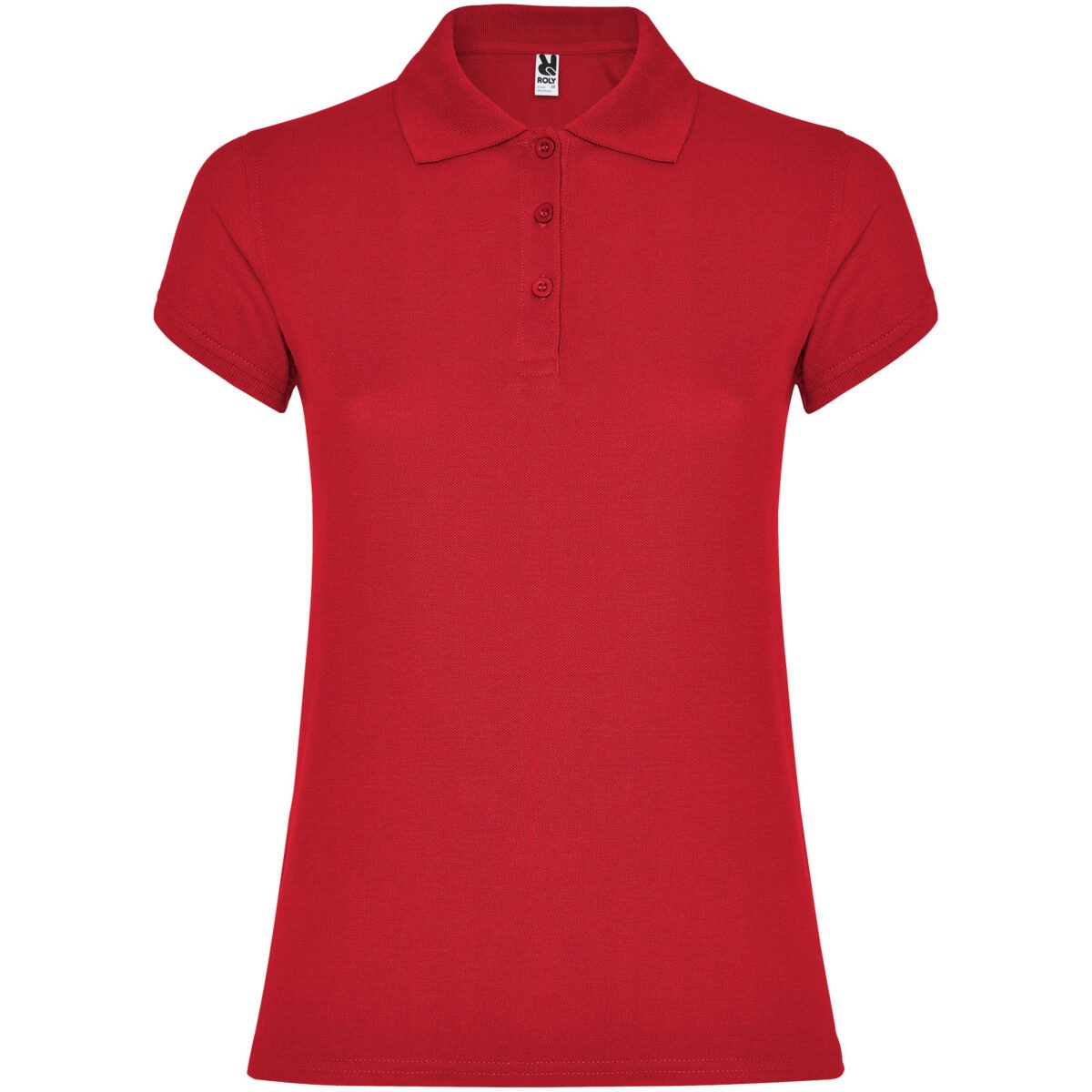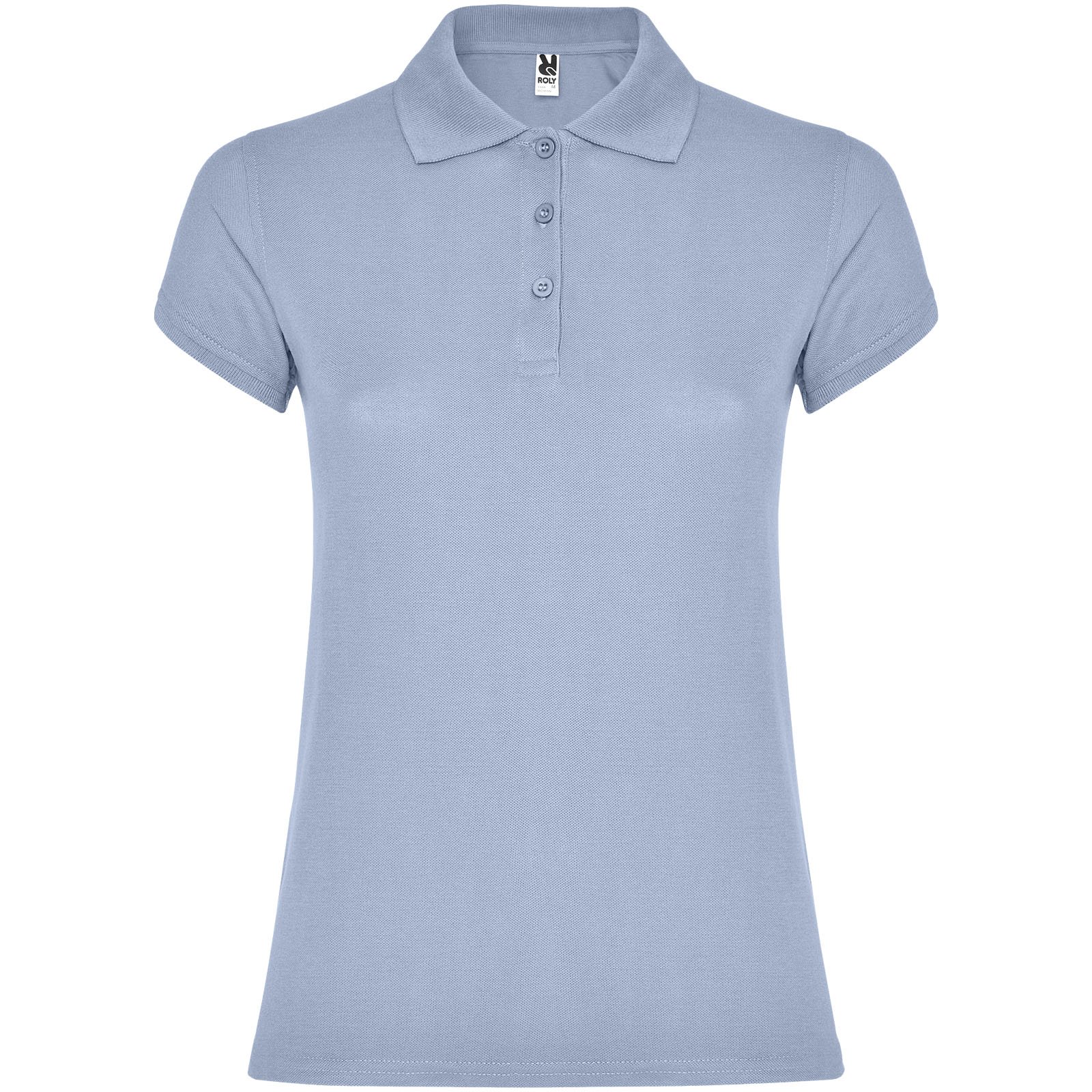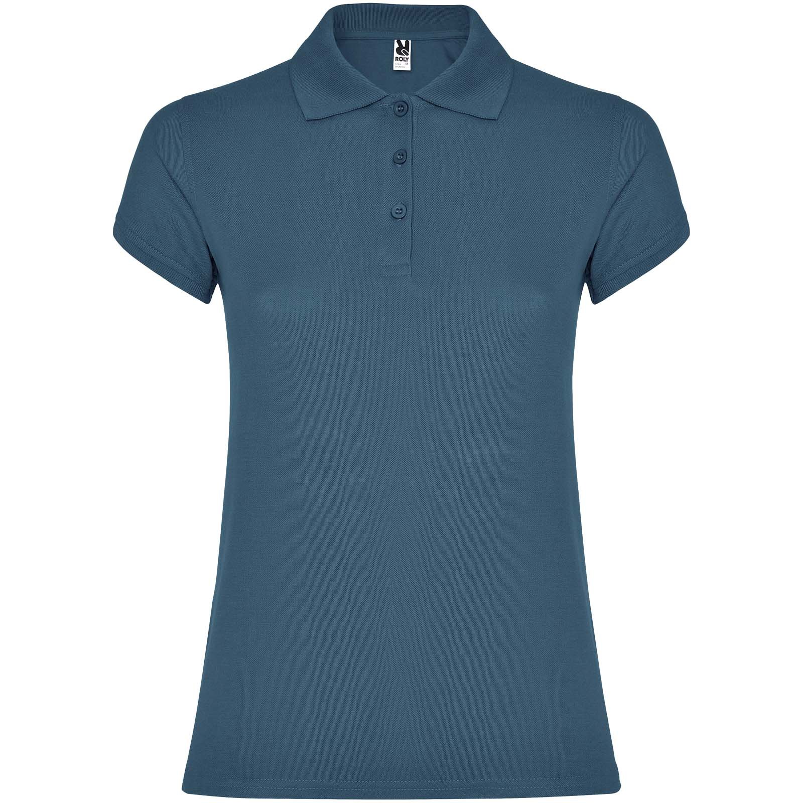 Polo à manches courtes pour femme. Coutures recouvertes renforcées à l’intérieur du col. Col et poignets en côte 1×1. Coutures latérales et coupe ajustée. Patte de boutonnage étroite à 3 boutons. Fentes latérales. Étiquette détachable. Le mannequin mesure 179 cm et porte la taille S.