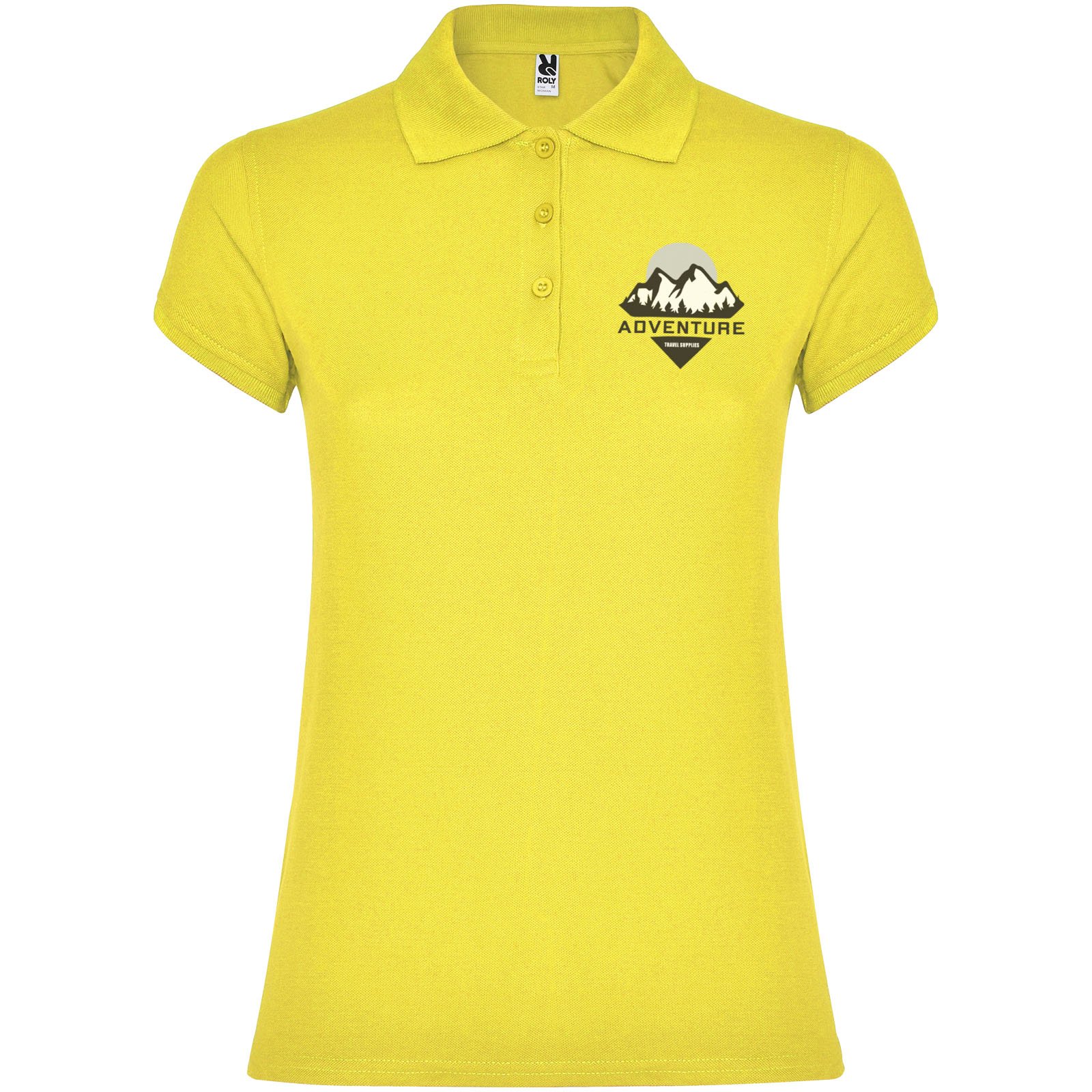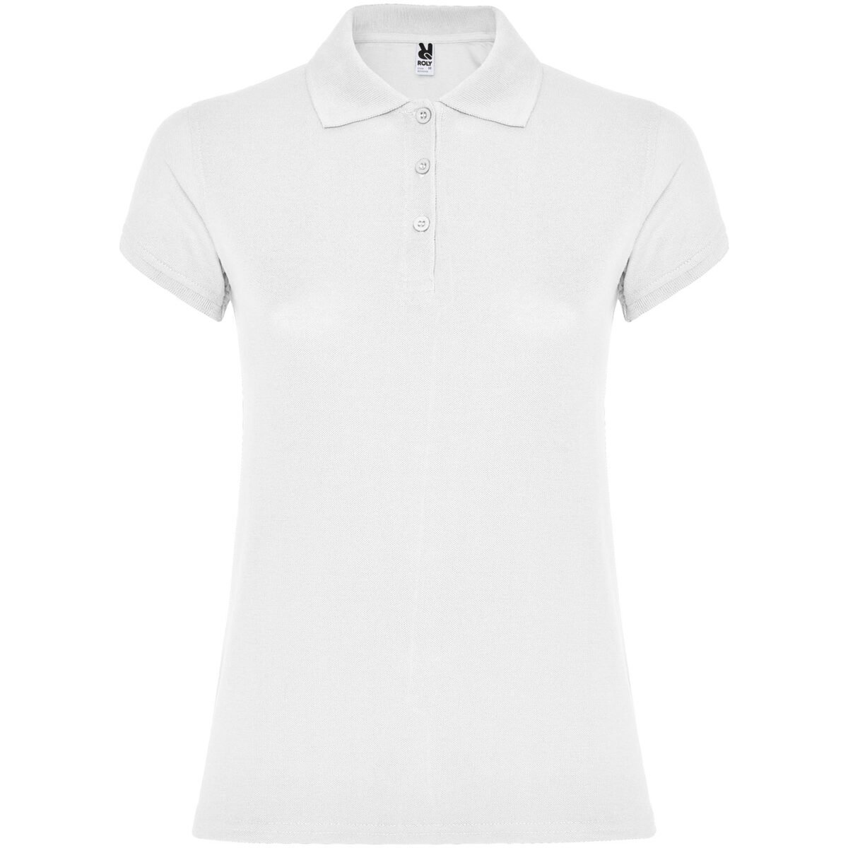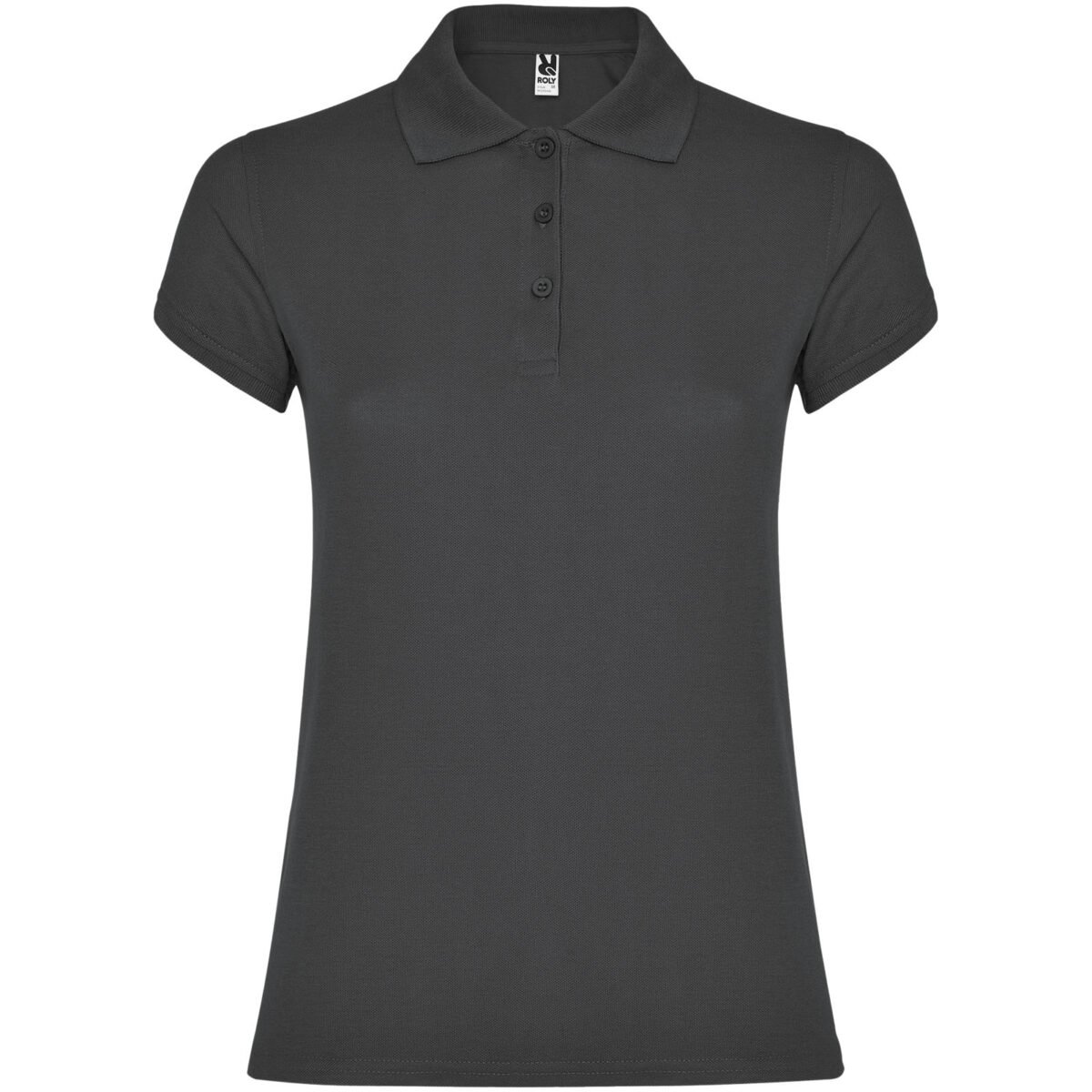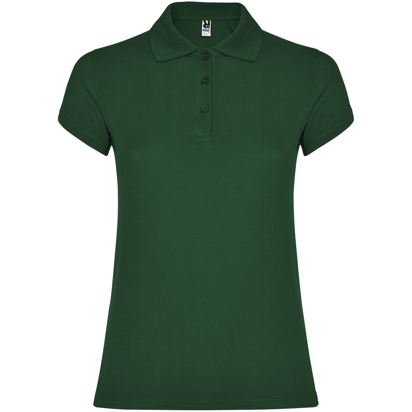 Polo à manches courtes pour femme. Coutures recouvertes renforcées à l’intérieur du col. Col et poignets en côte 1×1. Coutures latérales et coupe ajustée. Patte de boutonnage étroite à 3 boutons. Fentes latérales. Étiquette détachable. Le mannequin mesure 179 cm et porte la taille S.