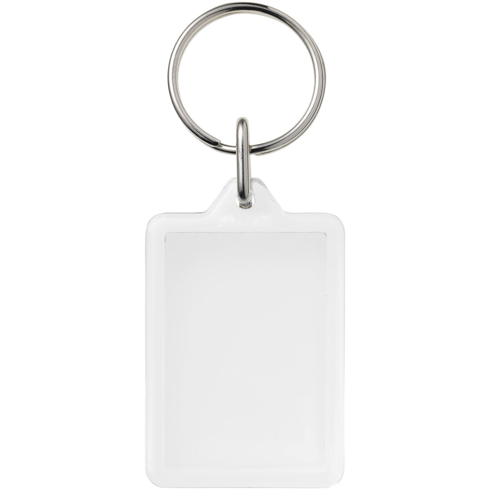 Porte-clés transparent Y1 rectangulaire avec anneau fendu en métal. L’anneau en forme de boucle métallique présente un profil plat idéal pour les envois. Dimensions de l’insert pour impression : 3,5 cm x 2,4 cm.