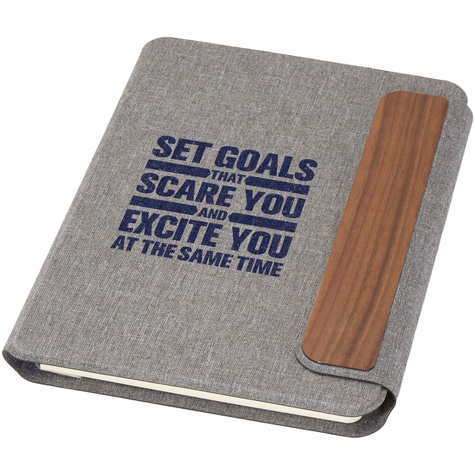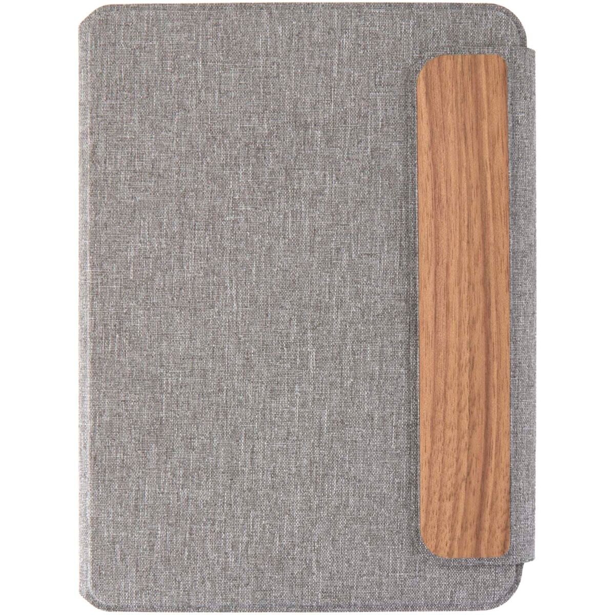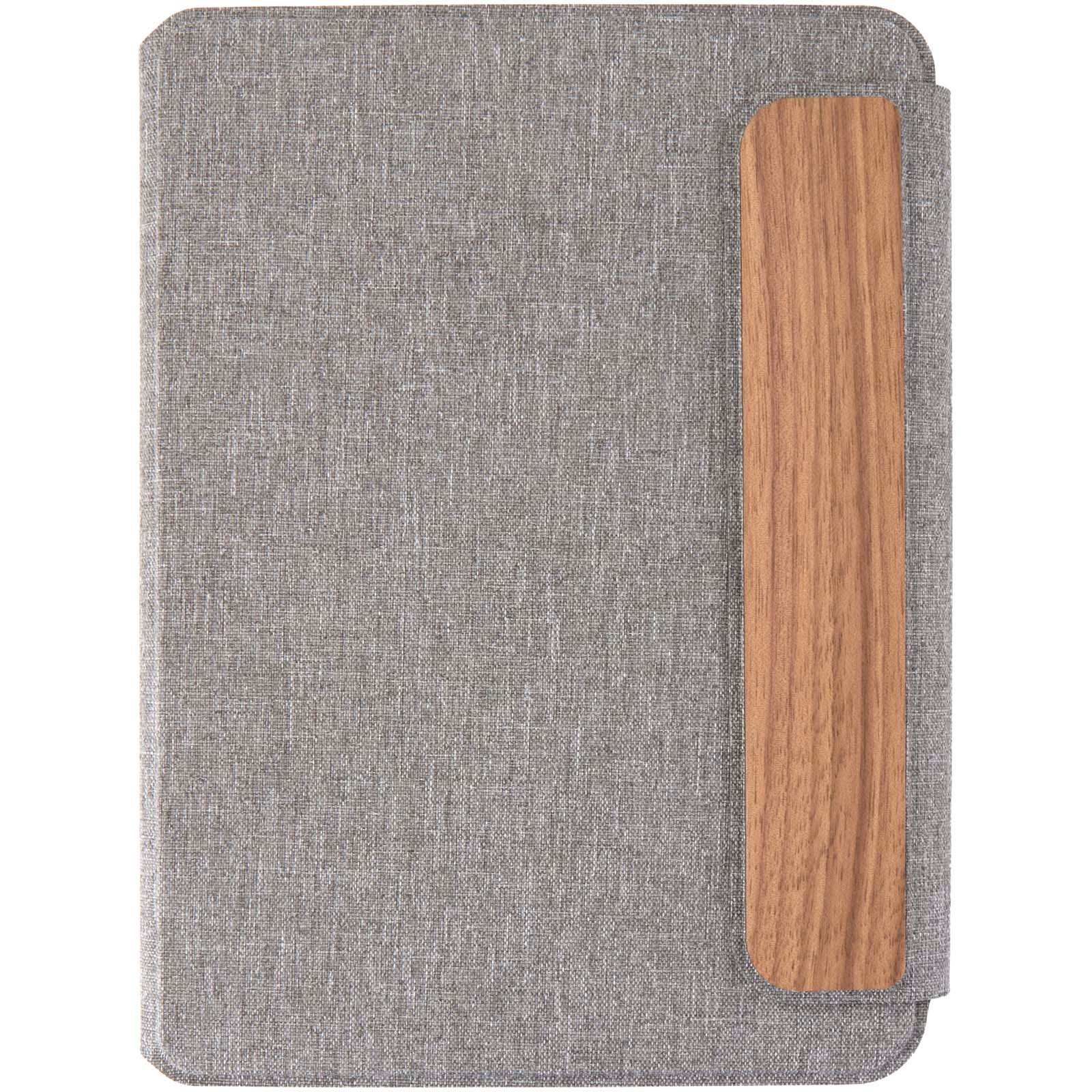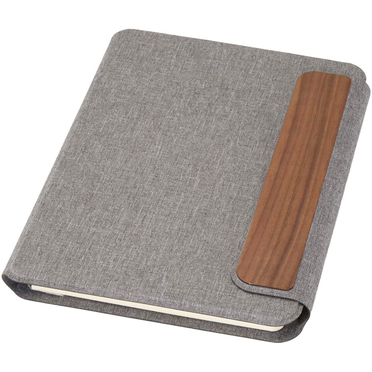 Le portfolio A5 Andean est en partie fabriqué à partir de polyester recyclé post-consommation certifié RCS, offrant une alternative plus durable en réduisant la dépendance aux matériaux vierges. Conçu avec une élégante couverture rigide grise aux coins arrondis et à la technologie de soudure de précision, il est sécurisé par une fermeture magnétique accentuée par un détail raffiné en bois de noyer, ajoutant une touche moderne et sophistiquée. À l’intérieur, vous trouverez un carnet à couverture souple amovible composé de 64 feuilles lignées de couleur crème, fabriquées à partir de papier 80 g/m² issu de sources responsables. Présenté dans une pochette en papier de couleur kraft.