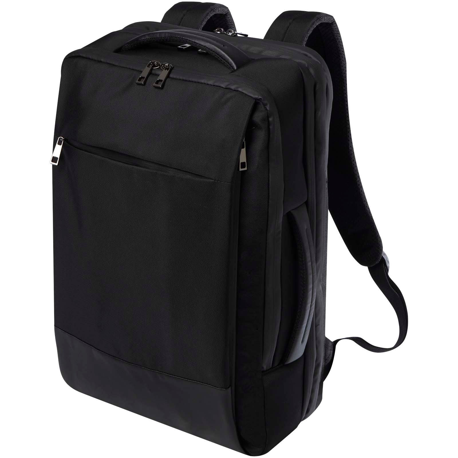 Le sac à dos pour ordinateur portable extensible et robuste Expedition Pro, certifié GRS, est le choix idéal pour les professionnels jonglant entre déplacements et travail. Le sac à dos offre une capacité étendue équivalente à celle d’un bagage à main. Il est fabriqué en rPET hydrofuge, associé à des éléments en PU de première qualité et à une doublure en rPET. Il comprend un compartiment dédié pour ordinateur portable 17″ et une pochette pour tablette, un compartiment extensible pour les vêtements, une grande poche étanche pour les articles de toilette et un compartiment avant spacieux doté de multiples poches de rangement à l’intérieur et à l’extérieur. Il est équipé de bretelles rembourrées et réglables, d’une pochette intégrée pour les cartes, d’une boucle pour les lunettes de soleil, d’un support en filet moulé et d’une poignée rembourrée, ce qui garantit un confort de transport maximal et une grande commodité. Capacité : 35 litres. Sans PVC.