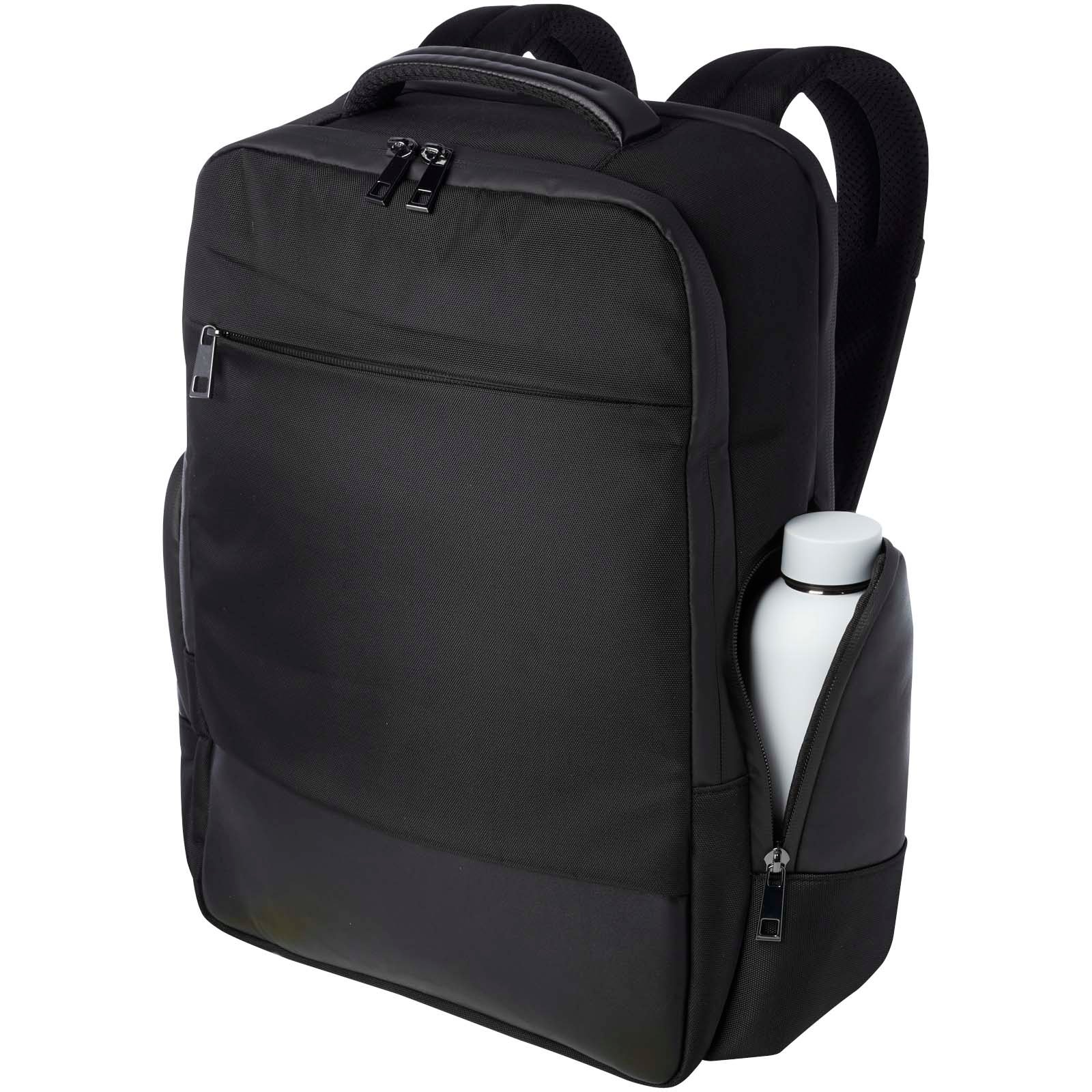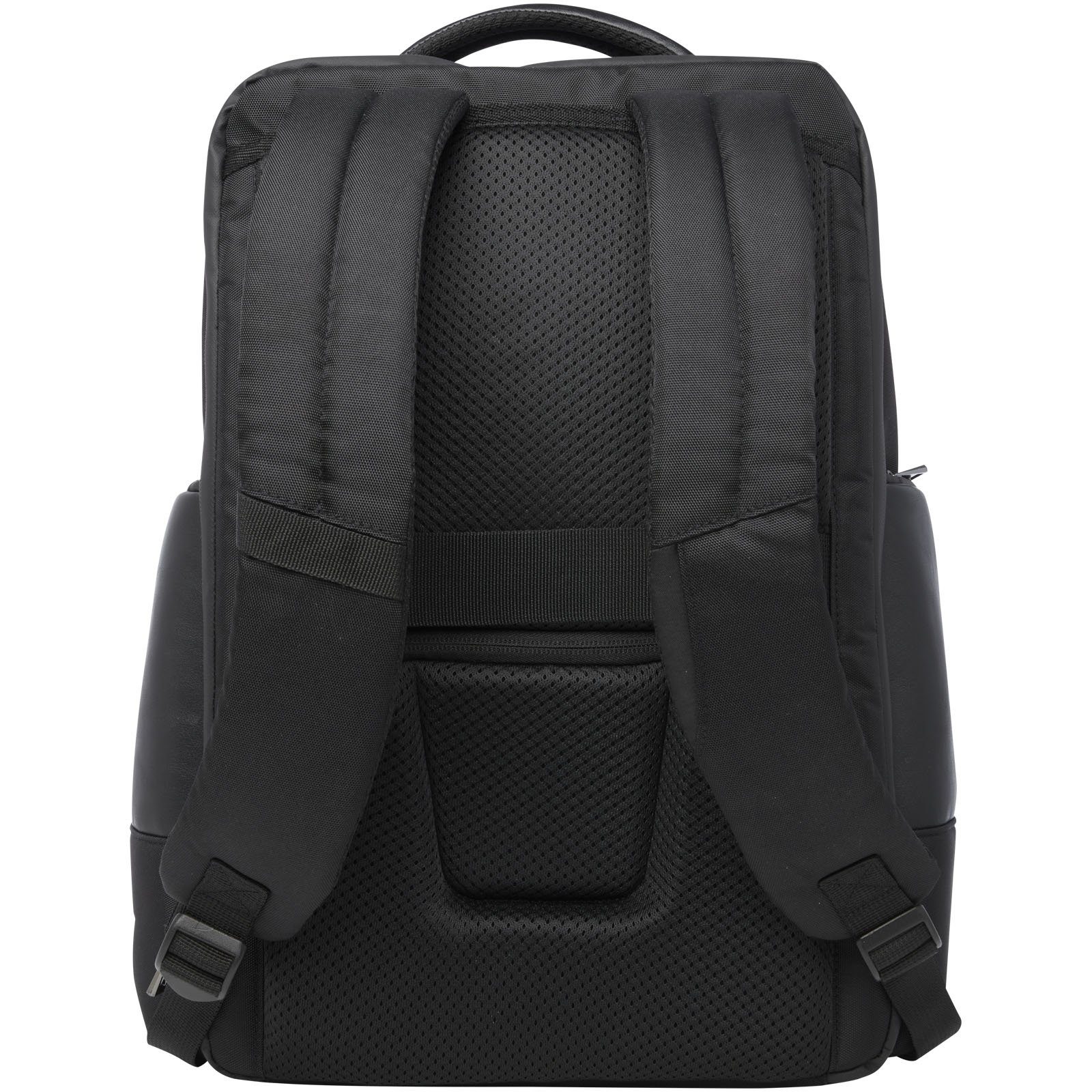 Le modèle élégant, grand et robuste certifié GRS Expedition Pro est le compagnon idéal des professionnels en déplacement. Il est fabriqué en RPET 900D hydrofuge, associé à des éléments en PU de première qualité et à une doublure en RPET. Il comprend un compartiment pour ordinateur portable de 15,6 pouces, une pochette pour tablette, un compartiment principal spacieux avec pochette étanche intégrée pour les articles de toilette, de multiples poches organisationnelles et latérales, une poche frontale zippée et une poche cachée juste sous la sangle du bagage, au dos. Il est équipé de bretelles rembourrées et réglables, d’une pochette intégrée pour les cartes, d’une boucle pour les lunettes de soleil, d’un support en filet moulé et d’une poignée rembourrée, ce qui garantit un confort de transport maximal et une grande commodité. Capacité : 25 litres. Sans PVC.