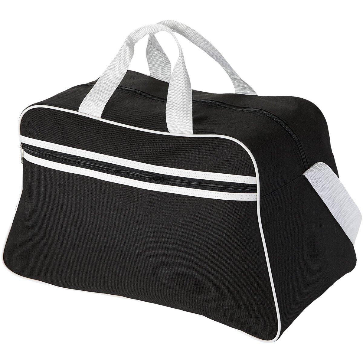 Sac de sport avec compartiment principal et poche frontale zippés.