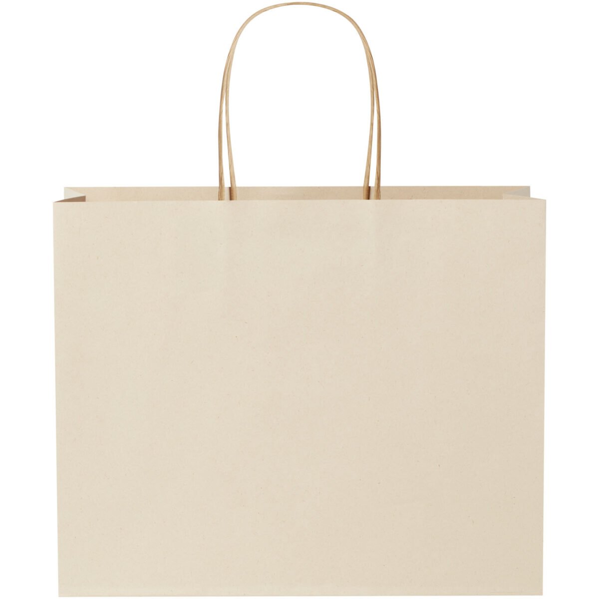 Grand sac en papier de 150 g/m2 (31 x 12 x 25 cm) fabriqué à partir de déchets agricoles avec poignées en papier torsadé. L’avant et l’arrière personnalisables offrent suffisamment d’espace pour l’impression d’un logo, ou de tout autre design, ce qui en fait un excellent outil de marketing commercial. Fabriqué en Europe et 100 % recyclable, ce sac est un choix plus durable pour les entreprises soucieuses de l’environnement et les particuliers à la recherche d’une solution d’emballage durable.