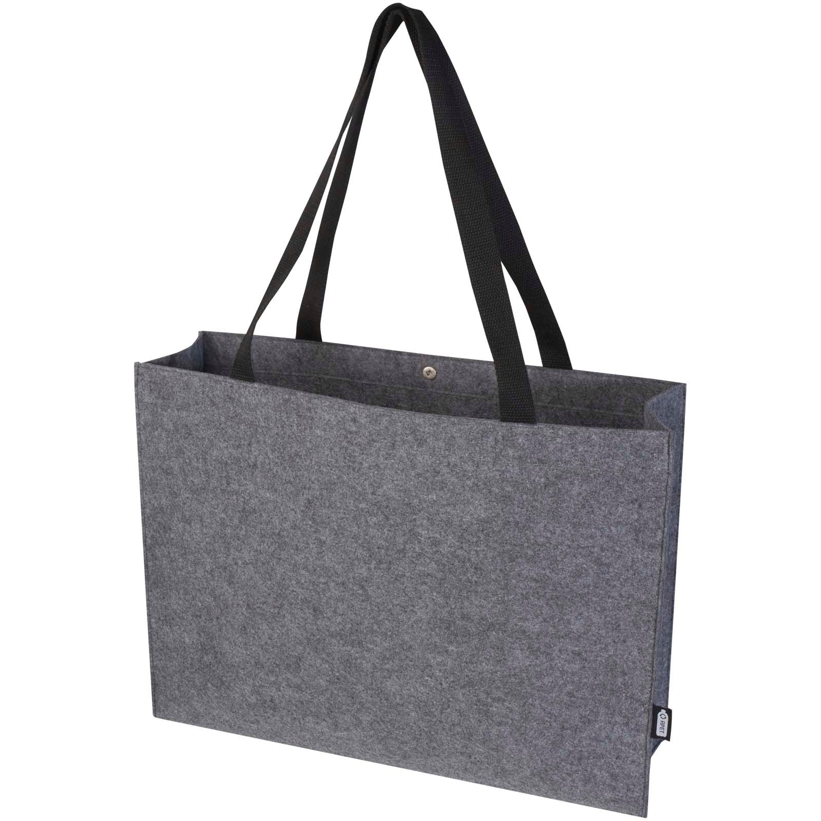 Grand sac shopping à soufflet, en feutrine recyclée douce, durable, certifiée GRS et de haute qualité. Le sac est doté d’un grand compartiment principal très spacieux (jusqu’à 20 litres), de poignées renforcées en coton tissé (30 x 2,5 cm) pour un confort de portage optimal, et d’un bouton de fermeture sur le dessus.