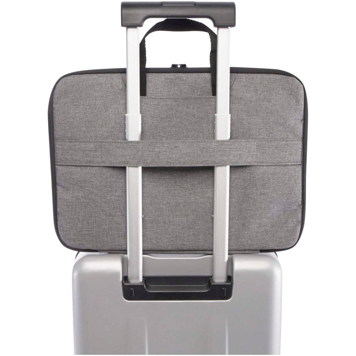 La sacoche pour ordinateur portable 2 en 1 Libra est parfaite pour les déplacements quotidiens ou les voyages en raison de ses fonctionnalités et de son design bien pensés. Elle est fabriquée à partir de polyester recyclé certifié GRS et d’une doublure en RPET. Elle est dotée d’un compartiment principal zippé qui peut s’ouvrir à 180 degrés pour faciliter les contrôles de sécurité. La sacoche comprend également une housse pour ordinateur portable 14″ protégée en néoprène de qualité d’un côté, 2 poches en maille filet de l’autre côté, une poche avant zippée, une sangle pour trolley à l’arrière et deux poches ouvertes pour un rangement supplémentaire où vous pouvez également ranger facilement les poignées en sangle, la transformant en housse pour ordinateur portable.