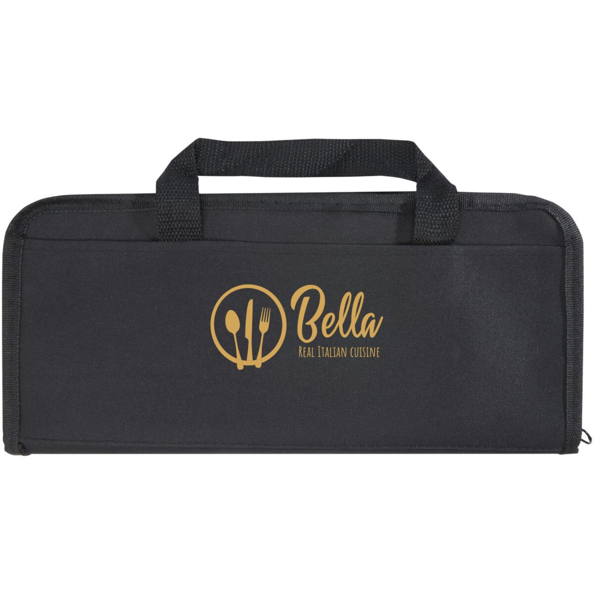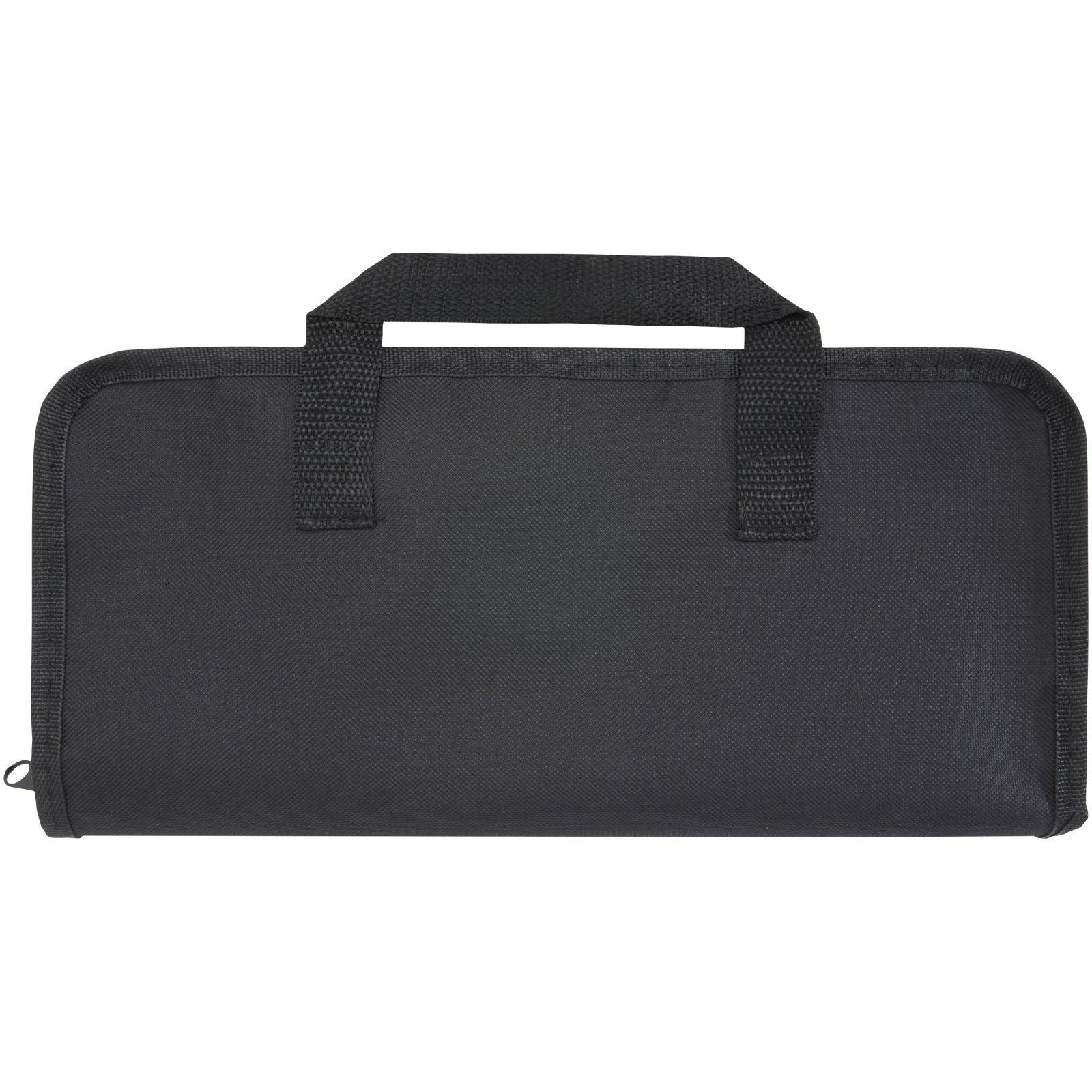 Ensemble à barbecue composé de 5 pièces dont une pelle (29 x 7 cm), une fourchette (29 x 1,7 cm), un couteau (29 x 2,4 cm), une planche à découper (19 x 13 x 1,1 cm) et un gant (25 x 16 cm).