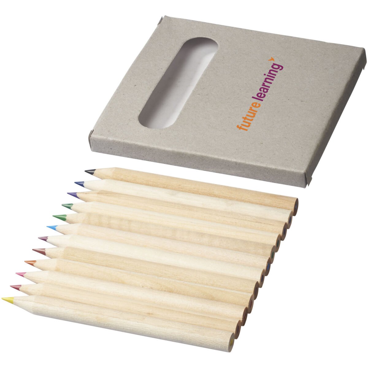 12 crayons de couleurs dans une pochette cartonnée. Marquage non disponible sur les composants.