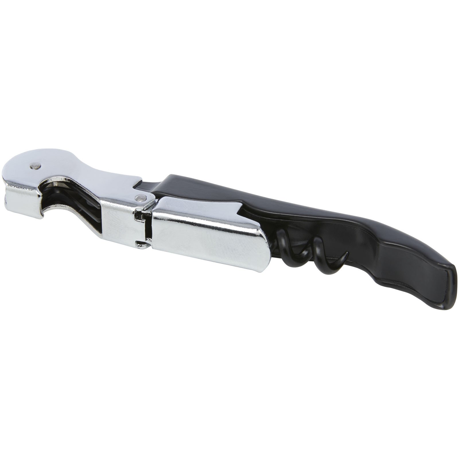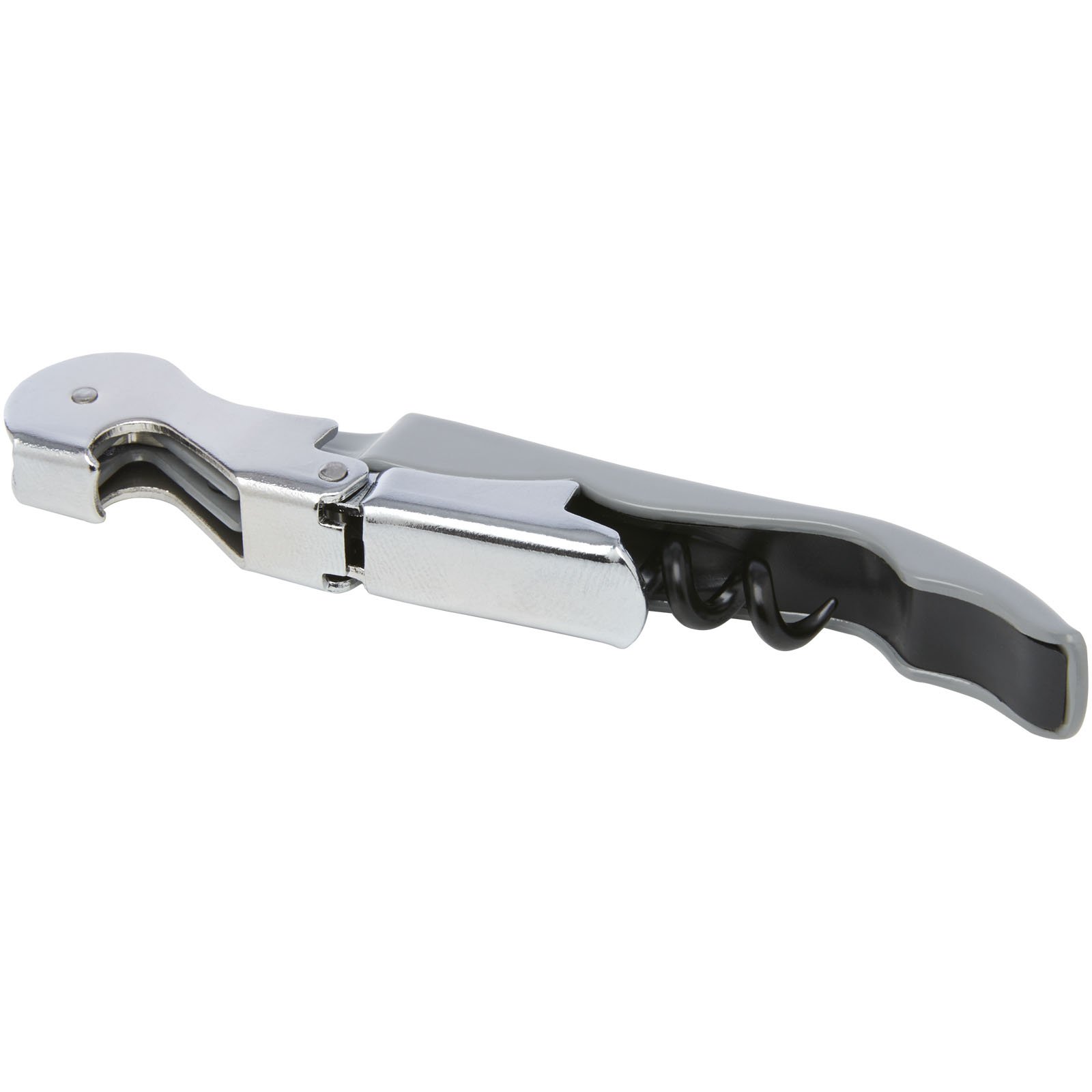 Sommelier en acier inoxydable avec corps coloré, doté d’un tire-bouchon, d’un coupe-opercule et d’un décapsuleur. Avec la construction en deux étapes, il est facile de retirer le bouchon de la bouteille.