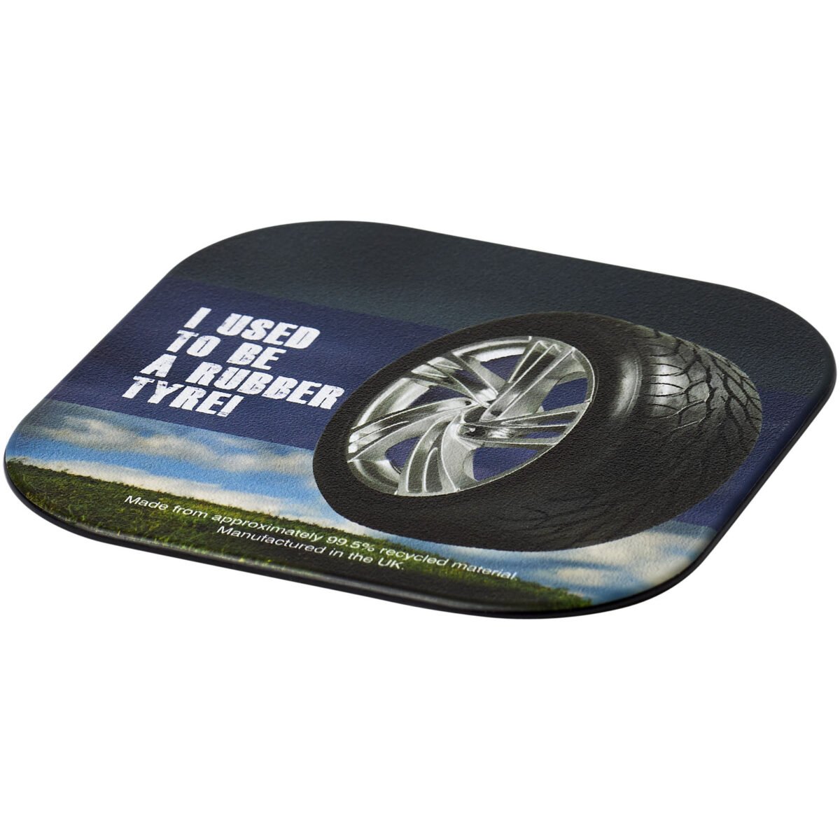 Dessous de verre offrant une reproduction superbement colorée et une base antidérapante discrète. Fait à partir de pneu, papier et plastiques recyclés.