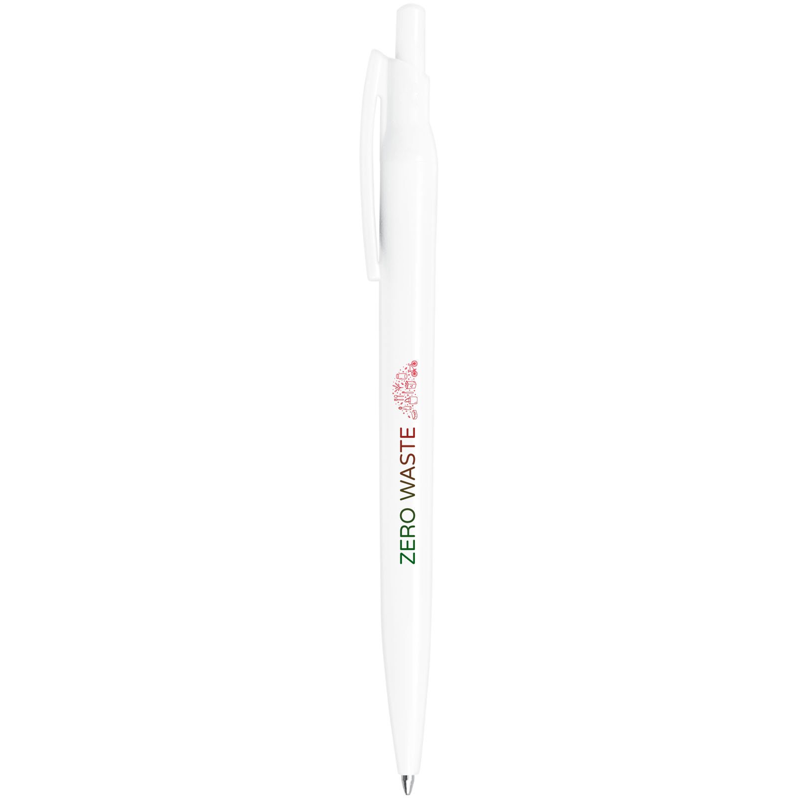 Stylo à bille rétractable produit avec du PET recyclé, provenant de bouteilles d’eau et de soda de post-consommation (sauf pour la recharge et le ressort). Une bouteille de 500 ml est utilisée pour produire un stylo bille. Comprend une recharge européenne X20 avec de l’encre pour documents et une longueur d’écriture d’environ 2 000 mètres. Également disponible avec une recharge d’encre noire (107722). Fabriqué en Italie.